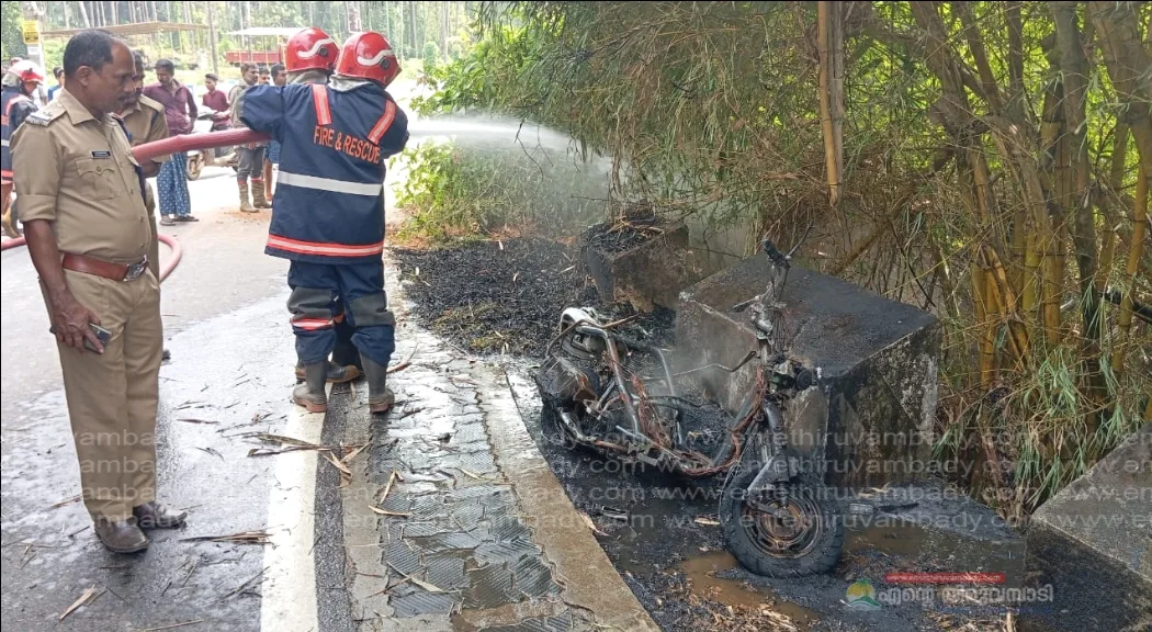 തിരുവമ്പാടി: പുന്നയ്ക്കൽ – കൂടരഞ്ഞി റോഡിൽ മഞ്ഞപ്പൊയിൽ പാലത്തിനു സമീപം റോഡരികിൽ നിർത്തിയിട്ട സ്കൂട്ടർ കത്തി നശിച്ചു. ഓമശ്ശേരി സ്വദേശി റോഡരികിൽ സ്കൂട്ടർ നിർത്തി പുഴയിൽ കുളിക്കാൻ ഇറങ്ങിയ സമയത്താണ് സ്കൂട്ടറിന് തീപിടിച്ചത്. സംഭവം അറിഞ്ഞെത്തിയ നാട്ടുകാർ ഫയർഫോഴ്സിനെ വിവരം അറിയിക്കുകയും തീ അണയ്ക്കാൻ ശ്രമിക്കുകയും ചെയ്തു. മുക്കത്ത് നിന്ന് അഗ്നിശമന സേന എത്തി പൂർണമായി തീ കെടുത്തി. അപ്പോഴേക്കും സ്കൂട്ടർ പൂർണമായി കത്തി നശിച്ചിരുന്നു. തീ പിടിക്കാനുള്ള കാരണം വ്യക്തമല്ല.