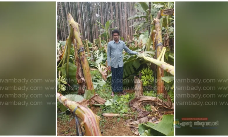 തിരുവമ്പാടി :ഇന്ന് ഉച്ചയ്ക്ക് ശേഷംമൂന്നുമണിക്ക് ശക്തമായ കാറ്റിലും മഴയിലും യുവകർഷകനായ മരക്കാട്ടുപുറംചാലിൽതൊടി വിനീത് C V യുടെ500 ഓളം വഴ കാറ്റിന് ഒടിഞ്ഞ് വീണത് ഓപ്പൺ പ്രസിഷ്യൻ ഫാമിഗ് ലൂടെ ചെയ്ത വാഴയാണ് നഷ്ടപെട്ടത്.കൂടാതെ മറ്റൊരു കർഷകനായമരക്കാട്ടുപുറംബാലഗോപാലൻ മുണ്ടക്കാപറമ്പത്ത് തൊണ്ടിമ്മൽ 400 ഓളം വാഴ കാറ്റിൽ ഒടിഞ്ഞു വീണു5 ലക്ഷം രൂപയോളം കൃഷി നാശം സംഭവിച്ചു.