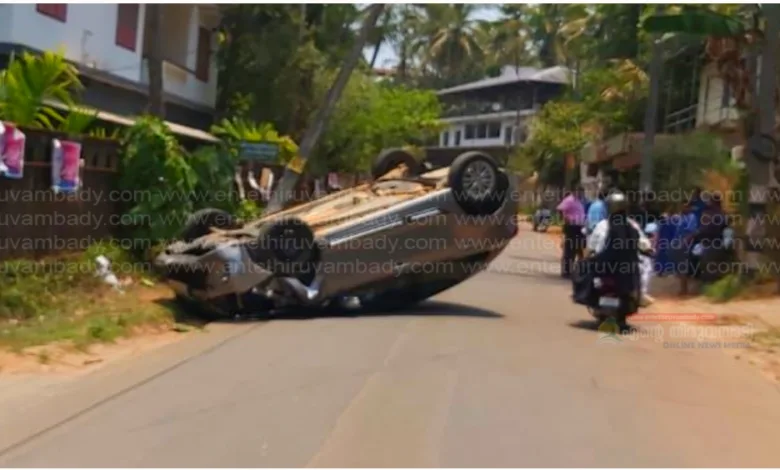 തിരുവമ്പാടി- ഓമശ്ശേരി തിരുവമ്പാടി റോഡിൽ തറോൽ കല്ലുരുട്ടി സഹകരണ ബാങ്കിന്റെ സമീപം കാർ പോസ്റ്റിൽ ഇടിച്ച് തലകീഴായി മറിയുകയായിരുന്നു.പുല്ലൂരാംപാറയിലേക്ക് പോവുകയായിരുന്ന കട്ടിപ്പാറ സ്വദേശികൾ സഞ്ചരിച്ച കാറാണ് അപകടത്തിൽ പെട്ടത്. അപകടത്തിൽ ആർക്കും പരിക്കില്ല.ഭാഗികമായി തടസ്സപ്പെട്ട ഗതാഗതം പിന്നീട് പുനസ്ഥാപിച്ചു…