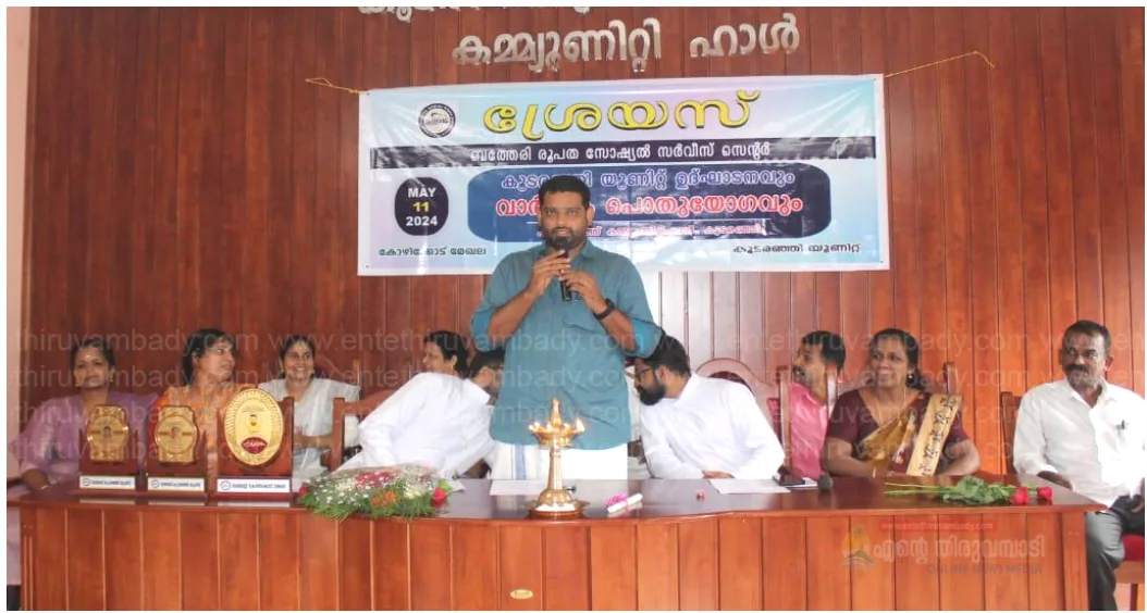 കൂടരഞ്ഞി:സോഷ്യൽ സർവീസ് സെന്റർ( ബത്തേരി രൂപത) ശ്രെയസ് കൂടരഞ്ഞി യൂണിറ്റ് കൂടരഞ്ഞി ഗ്രാമപഞ്ചായത് പ്രസിഡന്റ് ആദർശ് ജോസഫ് ഉദ്ഘാടനം ചെയ്തു. സാമൂഹിക പ്രതിബദ്ധതയുള്ള മനുഷ്യ സ്നേഹികളുടെ കൂട്ടായ്മ ആണ് ശ്രെയസ്. ഡയറക്ടർ റവ. ഫാ തോമസ് മണ്ണിതോട്ടം അധ്യക്ഷനായി, റവ. ഫാ ഡേവിഡ് ആലുങ്കൽ മുഖ്യസന്ദേശം നൽകി സംസാരിച്ചു. റവ. ഫാ സിജോ പന്തപ്പള്ളി ,ഗ്രാമപഞ്ചയത്ത് അംഗങ്ങളായ ജെറീന റോയ്, ബിന്ദു ജയൻ, ശ്രെയസ് ഭാരവാഹികൾ ആയ ലിസി റെജി, ജോസ് ഇടായതുപറ, ജോസ് കുറൂർ, തുടങ്ങിയവർ പങ്കെടുത്തു
