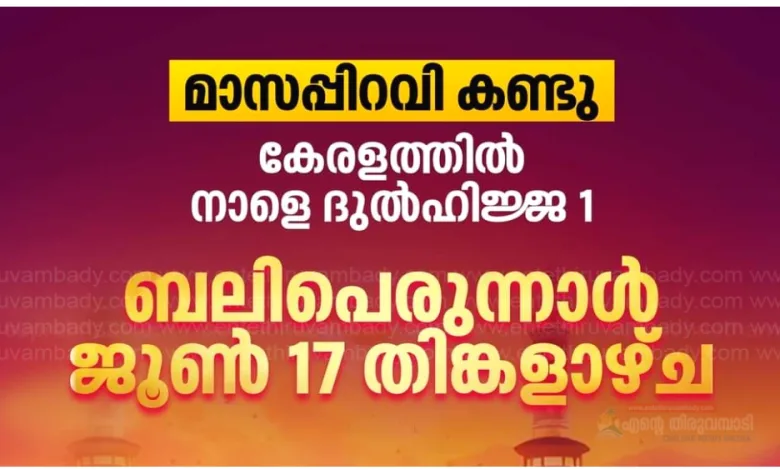 കോഴിക്കോട്: കാപ്പാട് ദുല്ഹിജ്ജ മാസപ്പിറവി കണ്ടതിന്റെ അടിസ്ഥാനത്തില് നാളെ (08/06/2024 ശനി) ദുല്ഹിജ്ജ ഒന്നും ജൂണ് 17 തിങ്കളാഴ്ച്ച ബലിപെരുന്നാളും ആയിരിക്കുമെന്ന് ഖാസിമാരായ സമസ്ത കേരള ജംഇയ്യത്തുല് ഉലമാ പ്രസിഡന്റ് സയ്യിദ് മുഹമ്മദ് ജിഫ്രി മുത്തുക്കോയ തങ്ങള്, സമസ്ത ജനറല് സെക്രട്ടറി പ്രൊഫ. കെ. ആലിക്കുട്ടി മുസ്ലിയാര്, പാണക്കാട് സയ്യിദ് സ്വാദിഖ് അലി ശിഹാബ് തങ്ങളുടെ നാഇബ് പാണക്കാട് സയ്യിദ് ഹമീദലി ശിഹാബ് തങ്ങൾ, കോഴിക്കോട് ഖാസി സയ്യിദ് മുഹമ്മദ് കോയ ജമലുല്ലൈലി തങ്ങളുടെ നാഇബ് സയ്യിദ് അബ്ദുള്ളക്കോയ ശിഹാബുദ്ദീന് തങ്ങള്, സയ്യിദ് നാസര്ഹയ്യ് ശിഹാബ് തങ്ങള് പാണക്കാട് എന്നിവര് അറിയിച്ചു.