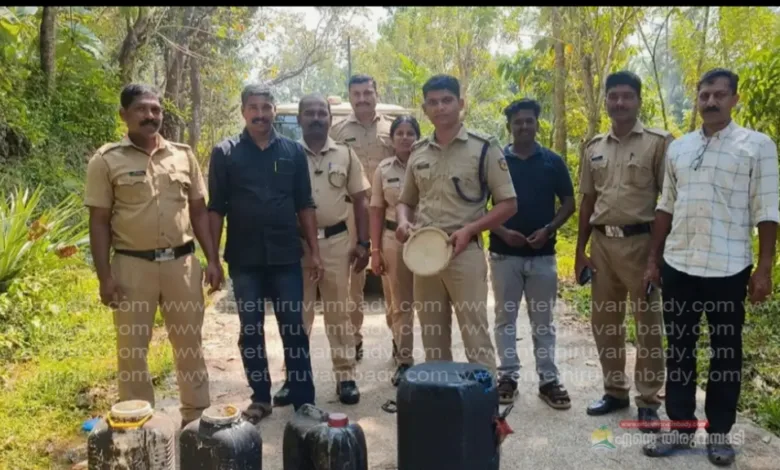 പെരുവണ്ണാമൂഴി നരിമഞ്ച കോളനിയിലെ ആളൊഴിഞ്ഞ പറമ്പില് നിന്നും വാഷും, വാറ്റുപകരണങ്ങളും പോലീസ് കണ്ടെത്തി. തുടർന്ന് നടത്തിയ പരിശോധനയിലാണ് കോളനി റോഡിന്റെ സൈഡിലായി ഒളിപ്പിച്ച നിലയിലായിരുന്ന 6 ലിറ്റർ ചാരായം കണ്ടെത്തിയത്. ഇവയെല്ലാം നശിപ്പിച്ചതായി പോലീസ് അറിയിച്ചു.
