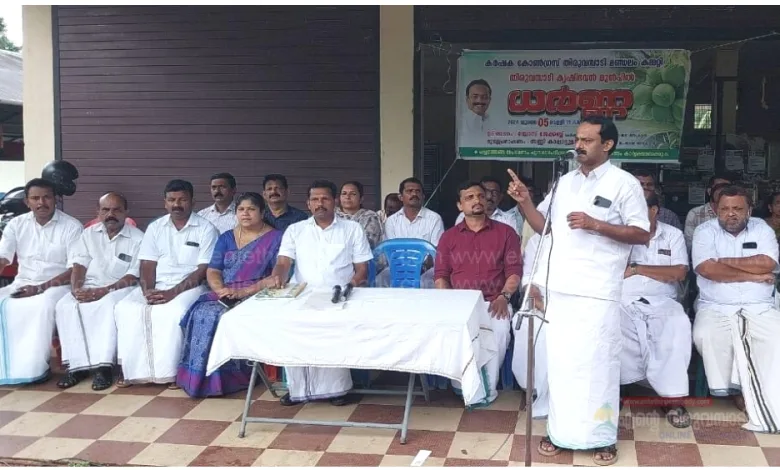 പച്ച തേങ്ങ സംഭരണം നിറുത്തിയതിൽ പ്രതിക്ഷേധിച്ച് കർഷകോൺഗ്രസ്സ് കൃഷിഭവന്റെ മുൻപിൻ ധർണ്ണ സംഘടിപ്പിച്ചു