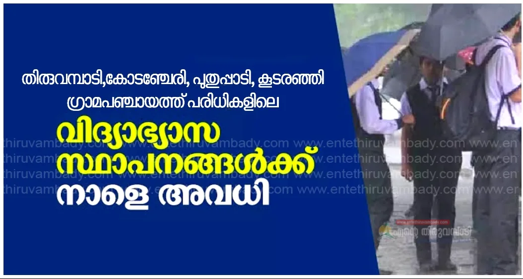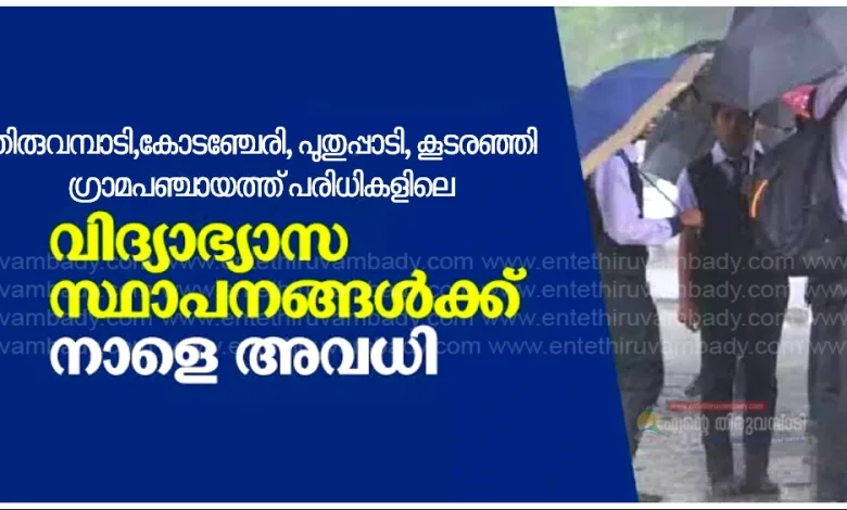 തിരുവമ്പാടി,കോടഞ്ചേരി, പുതുപ്പാടി, കൂടരഞ്ഞി,കൊടിയത്തൂർ ഗ്രാമപഞ്ചായത്ത് പരിധികളിലെ മുഴുവൻ വിദ്യാഭ്യാസ സ്ഥാപനങ്ങൾക്കും നാളെ അവധി
