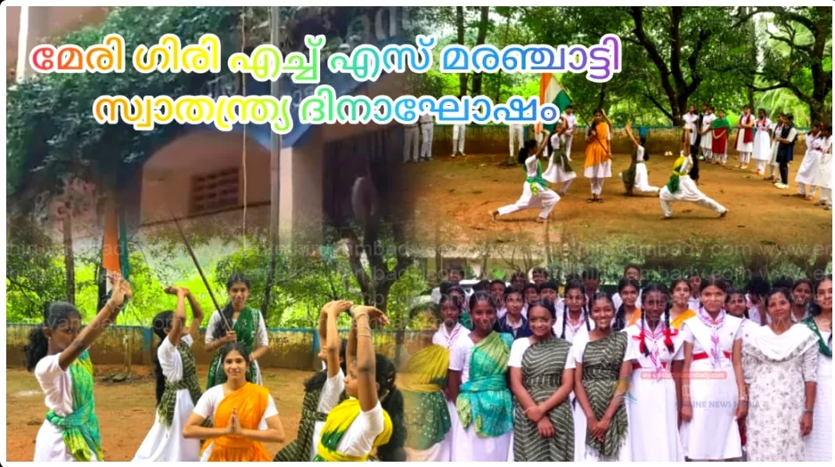 മരഞ്ചാട്ടി : മേരിഗിരി ഹൈസ്കൂൾ മരഞ്ചാട്ടിയിൽ 78-ാമത് സ്വാതന്ത്ര്യദിനം ആഘോഷിച്ചു. സ്കൂൾ പി.ടി.എ പ്രസിഡന്റ് വിൽസൻ തോമസ് അധ്യക്ഷത വഹിച്ച ചടങ്ങിൽ സ്കൂൾ മാനേജർ റവ.ഫാ ജോർജ്ജ് കളപ്പുരയ്ക്കൽ ദേശീയ പതാക ഉയർത്തി. തുടർന്ന് സ്വാതന്ത്ര്യദിന സന്ദേശം നൽകി. സ്കൂൾ ഹെഡ്മിസ്ട്രസ്സ് സീന റോസ്, ഷിബിൻ ജോസ്, മാസ്റ്റർ ജോയൽ അബ്രാഹം സന്തോഷ്, എന്നിവർ സ്വാതന്ത്ര്യ ദിനസന്ദേശം നൽകി. മാസ് ഡ്രിൽ, ദേശഭക്തി ഗാനാലാപനം, നൃത്താവിഷ്കാരം എന്നിവ സ്വാതന്ത്ര്യദിനാഘോഷ ചടങ്ങിനെ വർണാഭമാക്കി. എയ്മി സാജു ,പ്രിയങ്ക മാനുവൽ, മാസ്റ്റർ അഖിലേഷ് പി. കെ. എന്നിവർ കലാപരിപാടികൾക്ക് നേതൃത്വം നൽകി.