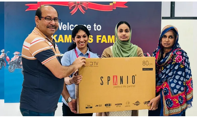 മുക്കം: ഇന്ത്യയിലെ ഏറ്റവും വലിയ ഡീലറായ മുക്കം ടി.വി.എസിൽ ഓണം ഓഫറിൻ്റെ ഭാഗമായി രണ്ടാം സമ്മാനം തിരുമ്പാടി സ്വദേശി റോഷ്ന ബീഗത്തിന്. ആദ്യ സമ്മാനം മാവൂർ-സങ്കേതം സ്വദേശി വരദരാജന് ലഭിച്ചിരുന്നു.