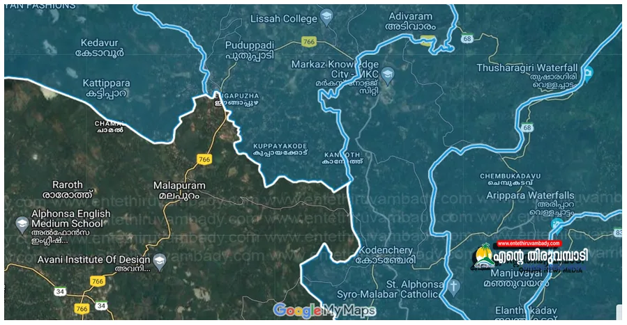 തിരുവമ്പാടി പഞ്ചായത്ത് അതിർത്തിയായ അഗസ്ത്യമുഴി പാലത്തിൽ നിന്ന് തുടങ്ങി, ഇരവഞ്ഞി പുഴയുടെ അതിർത്തി കൂടി തൊണ്ടിമ്മൽ, താഴെ തിരുവമ്പാടി, MC ഓഡിറ്റോറിയം, തിരുവമ്പാടി ടൌണും പള്ളിയും സ്കൂളും ഉൾപ്പെടെ, അൽഫോൻസാ കോളേജിൽ നിന്നും 50 മീറ്റർ മാറി, പുന്നക്കൽ ഭാഗത്തേക്ക് നീങ്ങുകയും അവിടെനിന്ന് പൊന്നാങ്കയം, പുല്ലൂരാംപാറ, അനക്കപൊയിൽ, മുത്തപ്പൻപുഴ, നെല്ലിപൊയിൽ, ചെമ്പുകടവ്, തുഷാര ഗിരി, അടിവാരം, മയിലള്ളമ്പാറ വഴി തലയാട് അങ്ങാടിയുടെ സമീപത്തു കൂടി,കട്ടിപ്പാറ,കാക്ക വയൽ,പുതുപ്പാടി, ഈങ്ങാപ്പുഴ, മർകസ് നോളജ് സിറ്റി, കുപ്പായക്കോട്, കണ്ണോത്ത്, KH club, കോടഞ്ചേരി ടൌൺ, കോളേജ്, പള്ളി, സ്കൂൾ അടക്കം , മുറമ്പത്തി,വേളംകോട്, തമ്പലമണ്ണ പ്രദേശങ്ങൾ കവർ ചെയ്തു തിരുവമ്പാടി അതിർത്തിയിൽ എത്തുന്ന വിധത്തിലാണ് മാർക്ക് ചെയ്തിരിക്കുന്നത്.