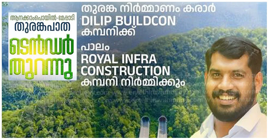 തിരുവമ്പാടി :കേരളത്തിന്റെ സ്വപ്ന പദ്ധതിയായ ആനക്കാംപൊയിൽ-കള്ളാടി-മേപ്പാടി തുരങ്കപാതയുടെ നിർമ്മാണം ആരംഭിക്കുന്നതിന്റെ ഭാഗമായി ടെൻഡർതുറന്നു.