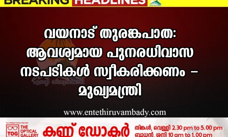വയനാട് തുരങ്കപാതപാതയുമായി ബന്ധപ്പെട്ട് ആളുകളുടെ കൈവശമുള്ള ഭൂമി ഏറ്റെടുക്കുമ്പോൾ ആവശ്യമായ എല്ലാ പുനരധിവാസ നടപടികളും സ്വീകരിക്കണമെന്ന് മുഖ്യമന്ത്രി പിണറായി വിജയൻ നിർദേശം നൽകി. ചെറുവണ്ണൂർ മറീന കൺവെൻഷൻ സെന്ററിൽ നടന്ന മേഖലാതല അവലോകന യോഗത്തിൽ സംസാരിക്കുകയായിരുന്നു മുഖ്യമന്ത്രി.