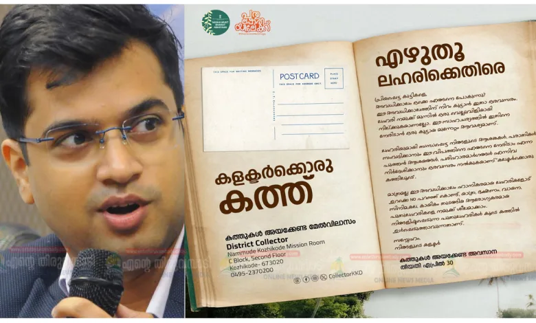 ലഹരിയുമായി ബന്ധപ്പെട്ട വിദ്യാര്ഥികളുടെ ആശയങ്ങളും ആശങ്കകളും ജില്ലാ കലക്ടറുമായി പങ്കുവെക്കാന് ‘കളക്ടര്ക്കൊരു കത്ത്’ ക്യാമ്പയിനുമായി ജില്ലാ ഭരണകൂടം. ലഹരി ഉപയോഗത്തിലെ വര്ധനവ്, അത് ചെലുത്തുന്ന സ്വാധീനം, ലഹരി ഉപയോഗത്തിന് പ്രേരകമാകുന്ന സാഹചര്യങ്ങള് എന്നിവയെ കുറിച്ച ആശങ്കകള്, പരാതികള്, മികച്ച പ്രതിരോധ മാര്ഗങ്ങള്, അവബോധ പ്രവര്ത്തനങ്ങള് സംബന്ധിച്ച നൂതന ആശയങ്ങള് തുടങ്ങിയവ ഹൈസ്കൂള്, ഹയര് സെക്കന്ഡറി വിദ്യാര്ത്ഥികള്ക്ക് കളക്ടറെ കത്തിലൂടെ അറിയിക്കാം.