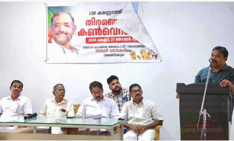 കോടഞ്ചേരി: വയനാട് ലോകസഭ തിരഞ്ഞെടുപ്പില് ഇടതുപക്ഷ ജനാധിപത്യ മുന്നണി സ്ഥാനാര്ത്ഥി സത്യന് മൊകേരിയെ വിജയിപ്പിക്കുന്നതിനായി ചേര്ന്ന കണ്ണോത്ത് മേഖല എല്.ഡി.എഫ് കണ്വെന്ഷന് സിപിഐഎം ഏരിയ സെക്രട്ടറി വി.കെ.വിനോദ് ഉദ്ഘാടനം ചെയ്തു.എന്.സി.പി ജില്ല വൈസ് പ്രസിഡന്റ് പി.പി.ജോയി അദ്ധ്യക്ഷത വഹിച്ചു.സിപിഐഎം ലോക്കല് സെക്രട്ടറി കെ.എം.ജോസഫ് മാസ്റ്റര് സ്വാഗതം പറഞ്ഞു.സിപിഐ ജില്ല കമ്മിറ്റിയംഗം കണ്ണന്,കേരള കോണ്ഗ്രസ് (എം) ജില്ല സെക്രട്ടറി റോയി മുരിക്കോലി തുടങ്ങിയവര് സംസാരിച്ചു.സിപിഐഎം ലോക്കല് കമ്മിറ്റിയംഗം ഷെജിന്.എം.എസ് നന്ദി പറഞ്ഞു.101 അംഗ തിരഞ്ഞെടുപ്പ് കമ്മിറ്റി രൂപീകരിച്ചു.ഭാരവാഹികള്ഃപി.പി.ജോയി (ചെയര്മാന്), കെ.എം.ജോസഫ് മാസ്റ്റര് (കണ്വീനര്),ജോണി താഴത്ത് വീട്ടില് (ഖജാന്ജി)ഷെജിന്.എം.എസ്,എം.എം സോമന്,തോമസ് താന്നിക്കുന്നേല് (ജോ.കണ്വീനര്മാര്),കെ.എ.ജോണ് മാസറ്റര്,സുബ്രഹ്മണ്യന്.എം.സി,രജനി സത്യന്,ബാബു ചുരപ്ര (വൈ.ചെയര്മാന്മാര്)