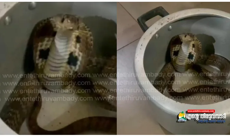 പൂനൂർ: തച്ചംപൊയിൽ ചാലക്കരയിൽ വീട്ടിലെ അടുക്കളയിൽ സൂക്ഷിച്ച പ്രഷർ കുക്കറിൽ ഉഗ്രവിഷമുള്ള മൂർഖൻ പാമ്പ്. തലനാരിഴയ്ക്കാണ് പാമ്പിൻ്റെ കടിയേൽക്കാതെ വീട്ടമ്മ രക്ഷപ്പെട്ടത്. വിവരമറിയിച്ചതിനെ തുടർന്ന് പാമ്പിനെ പിടികൂടുന്നതിൽ പരിശീലനം നേടിയ കോരങ്ങാട് സ്വദേശി എം.ടി ജംഷീദ് സ്ഥലത്തെത്തി പാമ്പിനെ പിടികൂടി.