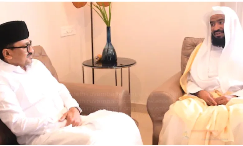 സമുദായ ഐക്യം കാലത്തിന്റെ അനിവാര്യത: സാദിഖലി ശിഹാബ് തങ്ങളുമായി ഹറം ഇമാം കൂടിക്കാഴ്ച നടത്തി
