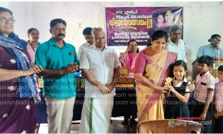 തിരുവമ്പാടി : തൊണ്ടിമ്മൽ ഗവ: എൽപി സ്കൂളിൽ ഉപജില്ലാ മേളയിലെ വിജയികളെ അനുമോദിക്കുന്നതിനായി വിജയോൽസവം സംഘടിപ്പിച്ചു.ഉപജില്ലാ കലാമേള, ശാസ്ത്രോൽസവം എന്നിവയിൽ 46 ഇനങ്ങളിൽ മികച്ച വിജയം നേടിയ 26 കുട്ടികൾക്കാണ് ഉപഹാരങ്ങൾ നൽകിയത്.പിടിഎ യും ബിഎൽഎം മുക്കം ബ്രാഞ്ചുമാണ് ഉപഹാരങ്ങൾ സ്പോൺസർ ചെയ്തത്.തിരുവമ്പാടി ഗ്രാമപഞ്ചായത്ത് പ്രസിഡൻ്റ് ബിന്ദു ജോൺസൺ പരിപാടി ഉദ്ഘാടനം ചെയ്തു. ഗ്രാമപഞ്ചായത്ത് മെംബർ പി ബീന അധ്യക്ഷത വഹിച്ചു. മുക്കം എച്ച്എസ്എസ് മാനേജർ വൽസൻ മഠത്തിൽ പ്രിൻ്റർ സമർപ്പണവും ഉപജില്ലാ ടീച്ചിംഗ് എയ്ഡ് നിർമ്മാണ വിജയി പി സ്മിനക്ക് ഉപഹാരവും നൽകി. മേളയിലേക്ക് കുട്ടികളെ പ്രാപ്തരാക്കി മികച്ച വിജയം നേടിയ വിദ്യാലയത്തിന് സ്രാമ്പിക്കൽ കുടുംബത്തിൻ്റെ ഉപഹാരം എസ് ദിനേശ് ബാബു വിതരണം ചെയ്തു. പിടിഎ പ്രസിഡൻ്റ് എസ് പ്രജിത്ത്, എസ്എംസി ചെയർമാൻ സുരേഷ് തൂലിക, എം പിടിഎ ചെയർപേഴ്സൺ കെ സുമം, ഹെഡ്മിസ്ട്രസ് കെഎസ് രഹ്നമോൾ, ബിഎൽഎം മുക്കം ബ്രാഞ്ച് കോഓഡിനേറ്റർ ദിവ്യ, എസ് ജയചന്ദ്രൻ, രാജേഷ് വെള്ളാരംകുന്ന്, എസ് ജയപ്രസാദ്, സിടി നളേശൻ, എസ് ജയരാജൻ പ്രസംഗിച്ചു.ഫോട്ടോ അടിക്കുറിപ്പ്: തൊണ്ടിമ്മൽ ഗവ: എൽ പി സ്കൂളിൽ വിജയോത്സവം പ്രതിഭകൾക്ക് ഉപഹാരം നൽകി തിരുവമ്പാടി ഗ്രാമപഞ്ചായത്ത് പ്രസിഡൻ്റ് ബിന്ദു ജോൺസൺ ഉദ്ഘാടനം ചെയ്യുന്നു.