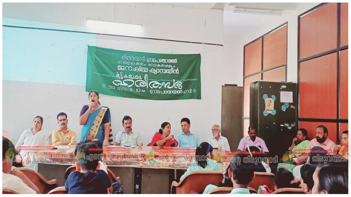 തിരുവമ്പാടി:തിരുവമ്പാടി ഗ്രാമപഞ്ചായത്ത് വിദ്യാർത്ഥികളുടെ ഹരിതസഭ സംഘടിപ്പിച്ചു. ഗ്രാമ പഞ്ചായത്ത് ഹാളിൾ നടന്ന പരിപാടി ഗ്രാമപഞ്ചായത്ത് പ്രസിഡൻ്റ് ബിന്ദു ജോൺസൺ ഉദ്ഘാടനം ചെയ്തു.ഗ്രാമ പഞ്ചായത്ത് വൈസ് പ്രസിഡൻ്റ് കെ.എ അബ്ദു റഹിമാൻ അദ്ധ്യക്ഷത വഹിച്ചു.കോഴിക്കോട് ഡയറ്റ് പ്രിൻസിപ്പൽ അബ്ദുൾ നാസർ കുട്ടികൾക്ക് ക്ലാസെടുത്തു.വിവിധ വിദ്യാലയങ്ങളിൽ നിന്നും വിദ്യാർത്ഥി പ്രതിനിധികൾ ശുചിത്വ റിപ്പോർട്ട് അവതരിപ്പിച്ചു.പരിപാടിയിൽ ഗ്രാമ പഞ്ചായത്തിലെ വിവിധ സ്കൂളുകളിൽ നിന്നായി നൂറോളം വിദ്യാർത്ഥികൾ പങ്കെടുത്തു.വിദ്യാലയ പരിസരവും, പൊതുയിടങ്ങളും, വീടും പരിസരവും ശുചിത്വത്തോടെ പരിപാലിക്കുമെന്ന പ്രതിഞ്ഞ പുതുക്കിയാണ് വിദ്യാർത്ഥികൾ ഹരിത സഭയിൽ നിന്ന് മടക്കിയത
