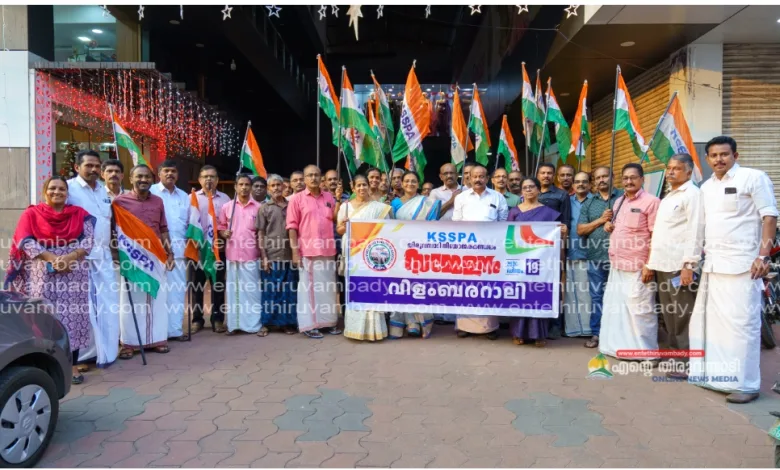 തിരുവമ്പാടി:നാളെ തിരുവമ്പാടി ഉമ്മൻ ചാണ്ടി നഗറിൽ നടക്കുന്ന കേരള സ്റ്റേറ്റ് സർവീസ് പെൻഷനേർസ് അസോസിയേഷൻ തിരുവമ്പാടി നിയോജക മണ്ഡലം സമ്മേളനത്തിൻ്റെ വിളംബരം അറിയിച്ച് കൊണ്ടുള്ള വിളംമ്പര ജാഥ തിരുവമ്പാടി അങ്ങാടിയിൽ നടത്തപ്പെട്ടു. നിയോജകമണ്ഡലം പ്രസിഡണ്ട് റോയ് തോമസിന് പതാക കൈമാറി കൊണ്ട് ഡി.സി.സി. ജനറൽ സെക്രട്ടറി ബാബു പൈക്കാട്ടിൽ ഉൽഘാടനം ചെയ്തു. ജാഥയ്ക്ക് അസോസിയേഷൻ ഭാരവാഹികളായ സുധാകരൻ കപ്പിയേടത്ത്, മില്ലി മോഹൻ, കെ.കെ. അബ്ദുൾ ബഷീർ, സുന്ദരൻ എ.പ്രണവം, അനിൽകുമാർപൈക്കാട്ട്, യു.പി. അബ്ദുൾ റസാക്ക്, കെ. ഐ. ലെയ്സമ്മ, ജോൺസൺ പുത്തൂര് , പുതിയോട്ടിൽ ഗംഗാദേവി, ഗീതമനക്കൽ, കൃഷ്ണൻകുട്ടികാരാട്ട്, കെ.പി. സാദിക്കലി, ഇ.പി. ചോയിക്കുട്ടി, ഇ.ജെ.തങ്കച്ചൻ എഴുത്താണിക്കുന്നേൽ, പി. വിജയൻ, കെ. മോഹൻദാസ്, ദേവസ്യചൊള്ളാമഠം, ജോയ് ജോസഫ്, കെ.എസ്. ഷാജു, ഇ.കെ.രാമചന്ദ്രൻ,കെ.സി. തങ്കച്ചൻ, ജോർജ് കുരുത്തോല എന്നിവർ നേതൃത്വം നൽകി.