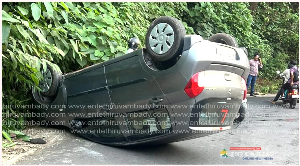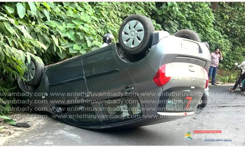 കക്കാടം പൊയിൽ ഭാഗത്ത് നിന്ന് വരുകയായിരുന്ന കാർ നീയന്ത്രണം നഷ്ടമായി റോഡിൽ തലകുത്തനെ മറിയുകയായിരുന്നു.