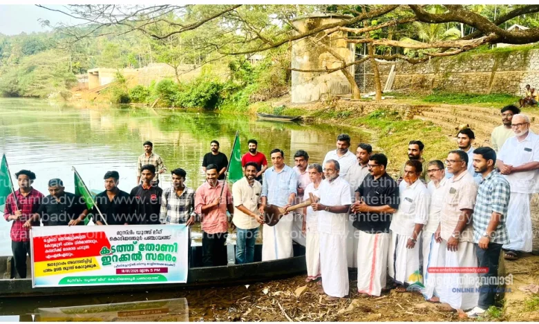 തോണിയിറക്കി മുസ്ലിം ലീഗ് സംസ്ഥാന സെക്രട്ടറി സി പി ചെറിയമുഹമ്മദ് സമരം ഉദ്ഘാടനം ചെയ്തു.പഞ്ചായത്ത് യൂത്ത്ലീഗ് പ്രസിഡണ്ട് ഫസൽകൊടിയത്തൂർ