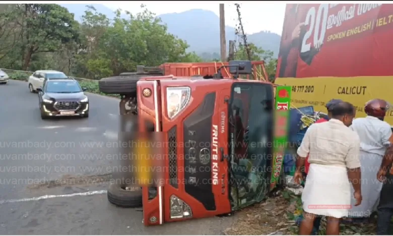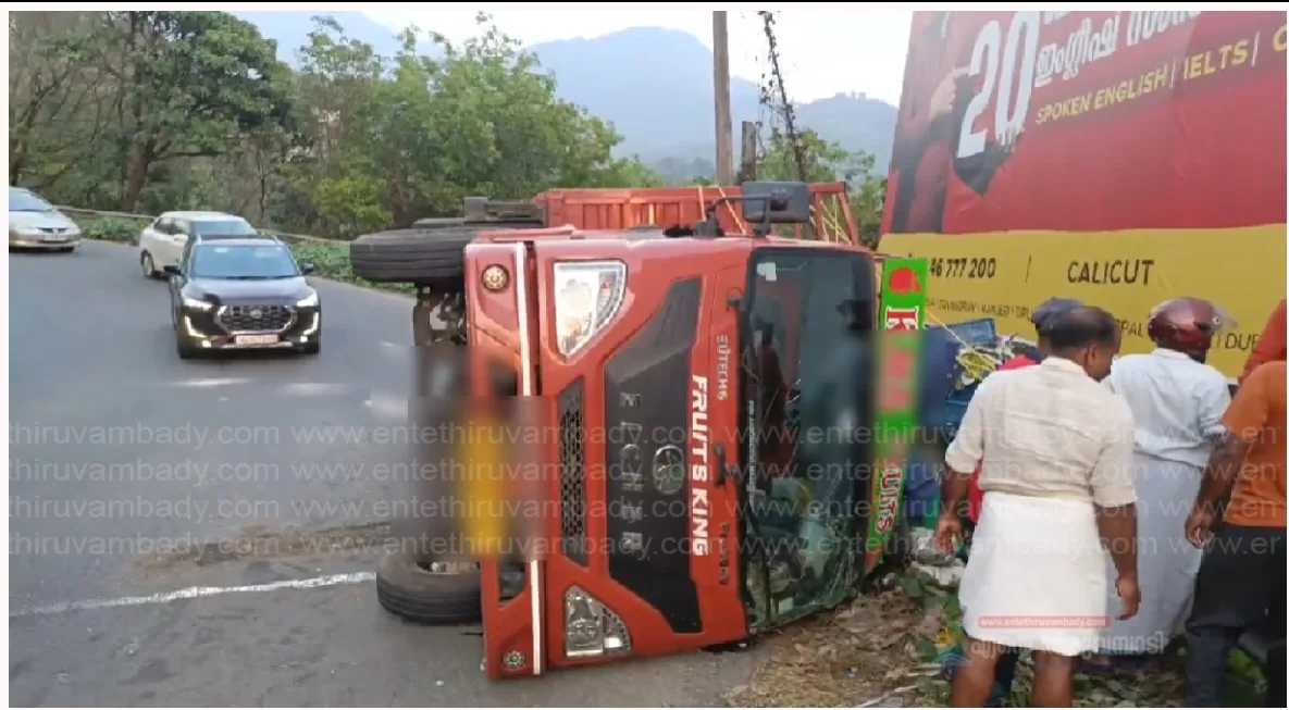 അടിവാരം : താമരശ്ശേരി ചുരത്തിലെ ഒന്നാം വളവിന് സമീപം ഫ്രൂട്ട്സുമായി ചുരം ഇറങ്ങി വരികയായിരുന്ന ലോറി മറിഞ്ഞ് അപകടം.