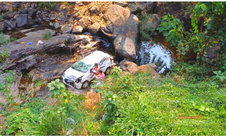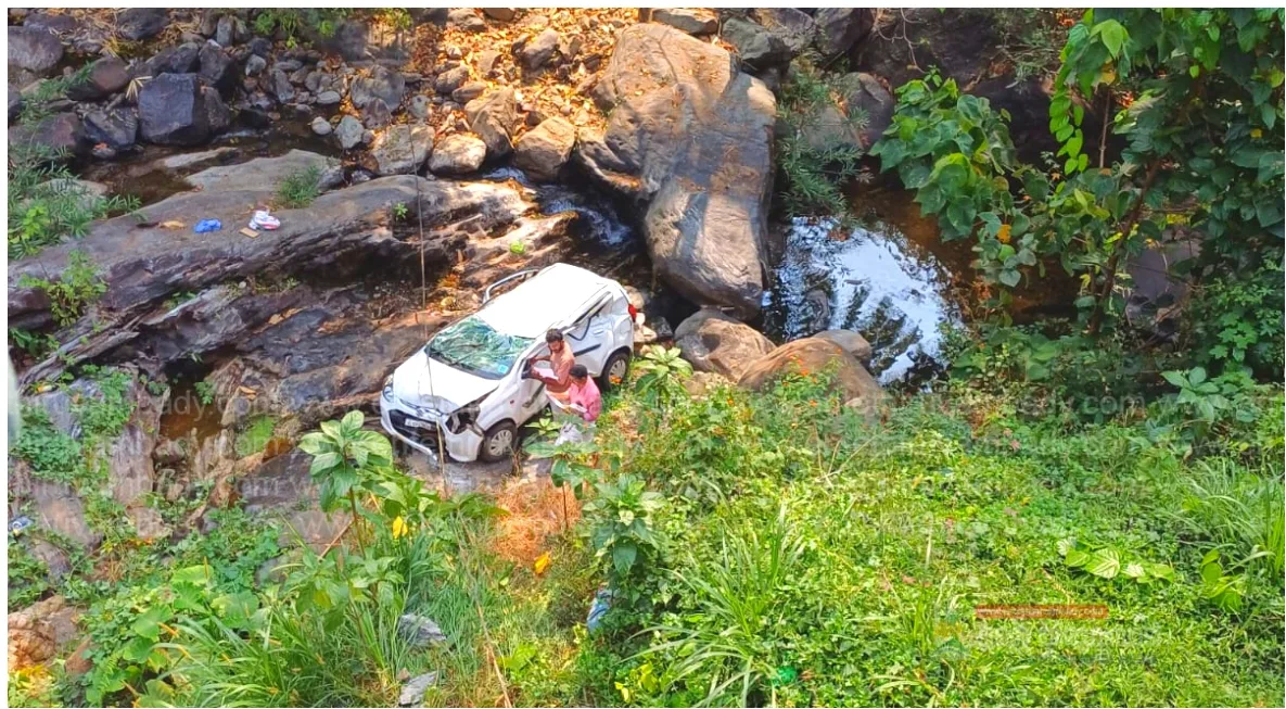 അടിവാരം:ചിപ്പിലിത്തോട് പുലിക്കൽ പാലത്തിന് സമീപം കാർ തൊട്ടിലേക്ക് മറിഞ്ഞു അപകടം.