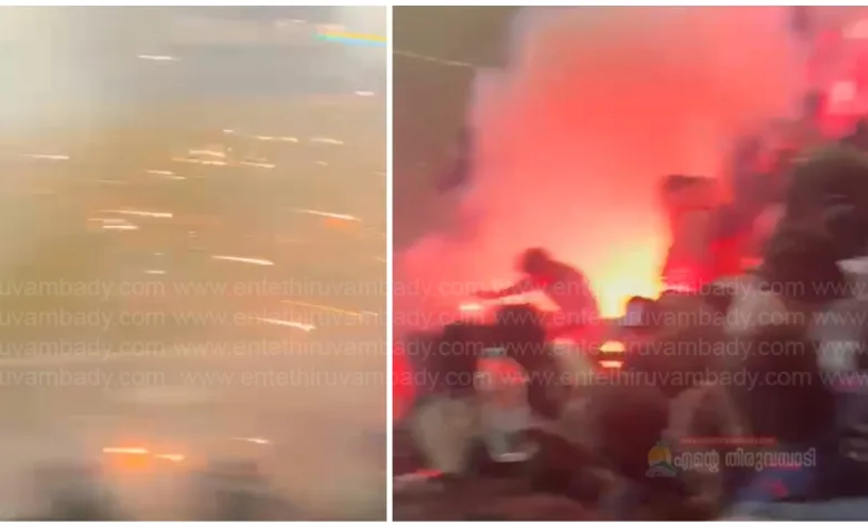 അരീക്കോട് ഫുട്ബോൾ ഗ്രൗണ്ടിൽ ഗ്യാലറിലേക്ക് വെടിക്കെട്ട് വീണ് നിരവധി പേർക്ക് പരിക്ക് -വീഡിയോ