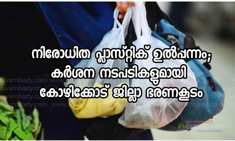 കോഴിക്കോട്:നിരോധിത പ്ലാസ്റ്റിക് ഉൽപ്പന്നങ്ങൾ വിൽപ്പന നടത്തുകയോ നിർമ്മിക്കുകയോ ചെയ്യുന്ന സ്ഥാപനങ്ങളിൽ കർശന നടപടികൾക്കൊരുങ്ങി കോഴിക്കോട് ജില്ലാ ഭരണകൂടം. ഇതിന്റെ ഭാഗമായി ജില്ലാതലത്തിലെ രണ്ട് എൻഫോഴ്സ്മെന്റ് സ്ക്വാഡുകളും പ്രവർത്തനങ്ങൾ ഊർജിതമാക്കുകയും പുതുതായി അഞ്ച് സ്ക്വാഡുകൾ രൂപീകരിക്കുകയും ചെയ്തു. ഇന്റെണൽ വിജിലൻസ് ഓഫീസർ മാരുടെ (ഐവിഒ) നേതൃത്വത്തിലാണ് പുതിയ സ്ക്വാഡുകൾ പ്രവർത്തിക്കുക. ഒപ്പം തദ്ദേശ സ്ഥാപനങ്ങളും പരിശോധന ശക്തമാക്കണമെന്ന് നിർദ്ദേശം നൽകിയിട്ടുണ്ട്.