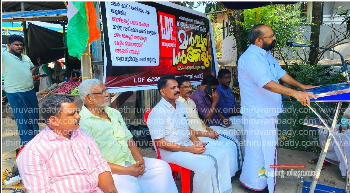 മുക്കം:പദ്ധതി ഫണ്ട് 4 കോടി രൂപ നഷ്ട്ടം വരുത്തി, തൊഴിലുറപ്പ് പദ്ധതി തകർത്തു, മാലിന്യ സംസ്കരണ പദ്ധതി അട്ടിമറിച്ചു .പണം കൈപറ്റി അനധികൃത കെട്ടിട നിർമാണത്തിന് അനുമതി നൽകി .മന്ത്ര കുടിവെള്ള പദ്ധതി അട്ടിമറിച്ചു എന്നാരോപിച്ചാണ് പഞ്ചായത്ത് ഭരണ സമിതിക്കെതിരെ എൽ ഡി എഫ് മാർച്ച് നടത്തിയത് നോർത്ത് കാരശ്ശേരിയിൽ നിന്നും ആരംഭിച്ച മാർച്ച് പഞ്ചായത്ത് ഓഫീസിന് മുമ്പിൽ പോലീസ് തടഞ്ഞു തുടർന്ന് നടന്ന ധർണ്ണ സി പി ഐ എം ജില്ലാ കമറ്റി അംഗം വിശ്വനാഥൻ ഉദ്ഘടനം ചെയ്യ്തു ധർണ്ണയിൽ കെ പി ഷാജി ,കെ ശിവദാസൻ , എ പി മൊയിൻ വി കെ വിനോദ് ,കെ സി ആലി ,പി കെ രതീഷ് , എം ആർ സുകുമാരൻ എന്നിവർ സംസാരിച്ചു