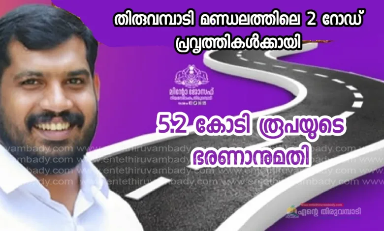 തിരുവമ്പാടി നിയോജകമണ്ഡലത്തിലെ രണ്ട് റോഡുകൾക്കായി 5.2 കോടി രൂപ അനുവദിച്ചതായി തിരുവമ്പാടി നിയോജകമണ്ഡലം എംഎൽഎ ലിന്റോ ജോസഫ്.പുതുപ്പാടി പഞ്ചായത്തിലെ അടിവാരം-നാലാംവളവ്-മുപ്പതേക്ര റോഡ് നവീകരണത്തിന് 4 കോടി രൂപയും കൂടരഞ്ഞി പഞ്ചായത്തിലെ വഴിക്കടവ്-പെരുമ്പൂള-നായാടംപൊയിൽ റോഡിന് 1.2 കോടി രൂപയുമാണ് അനുവദിച്ചത്.പൊതുമരാമത്ത് വകുപ്പ് R.P പ്രവൃത്തിയിൽ ഉൾപ്പെടുത്തിയാണ് തുക അനുവദിച്ചത്.സാങ്കേതികാനുമതി ലഭിച്ചതിന് ശേഷം ടെൻഡർ ചെയ്ത് പ്രവൃത്തി ആരംഭിക്കുമെന്ന് എംഎൽഎ പറഞ്ഞു.
