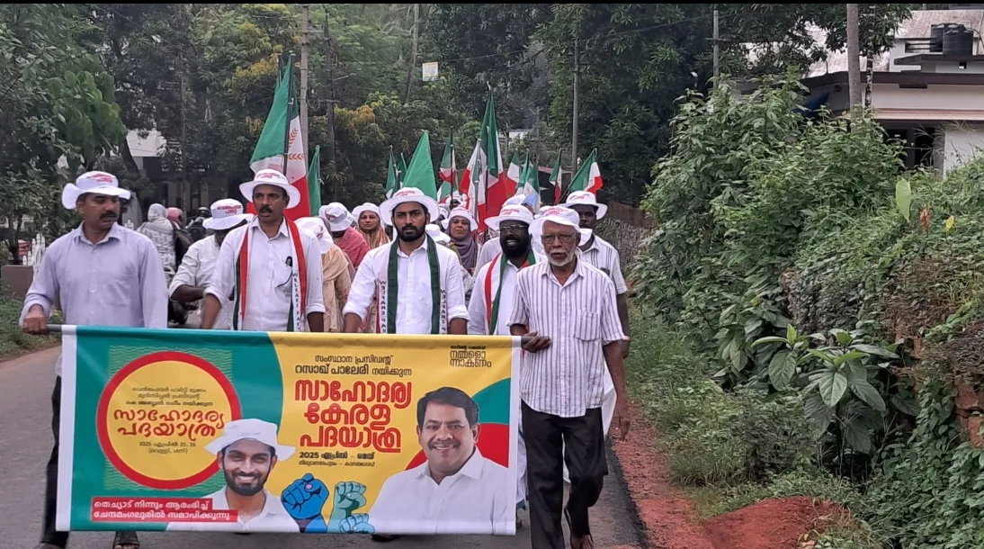 തെച്യാട് : ഭിന്നിപ്പ് രാഷ്ട്രീയത്തെ സാഹോദര്യം കൊണ്ട് പ്രതിരോധിക്കണമെന്ന് വെൽഫെയർ പാർട്ടി തിരുവമ്പാടി മണ്ഡലം പ്രസിഡന്റ് ചന്ദ്രൻ കല്ലുരുട്ടി അഭിപ്രായപ്പെട്ടു. നാടിന്റെ നന്മക്ക് നമ്മളൊന്നാകണം എന്ന മുദ്രാവാക്യം ഉയർത്തിപ്പിടിച്ച് വെൽഫെയർ പാർട്ടി മുക്കം മുൻസിപ്പൽ പ്രസിഡന്റ് കെ അബ്ദുൽ റഹീം നയിക്കുന്ന സഹോദര്യ പദയാത്രക്ക് പതാക കൈമാറി ഉദ്ഘാടനം ചെയ്ത് സംസാരിക്കുകയായിരുന്നു അദ്ദേഹം. സാഹോദര്യ കേരളം ഇന്നൊരു അപകടത്തിലൂടെ കടന്നു പോകുകയാണ്. പലതരം നുണകളും കെട്ടു കഥകളും നമുക്കിടയിൽ വ്യാപിച്ചു കൊണ്ടിരിക്കുന്നു. സഹോദര്യത്തെ തകർത്ത് ഭിന്നിപ്പ് വളർത്തി രാഷ്ട്രീയ ലാഭത്തിന് ശ്രമിക്കുന്നവർക്കെതിരെ സാഹോദര്യം കൊണ്ട് മറുപടി നൽകണമെന്ന് അദ്ദേഹം പറഞ്ഞു. ബിൽഡിങ് & കൺസ്ട്രക്ഷൻ ലേബേഴ്സ് യൂണിയൻ, എഫ്.ഐ.ടി.യു, കോഴിക്കോട് ജില്ലാ പ്രസിഡന്റ് മനോജ് കാഞ്ഞിരമുഴി ചടങ്ങിൽ അധ്യക്ഷത വഹിച്ചു. മുക്കം മുൻസിപ്പാലിറ്റി കൗൺസിലർമാരായ ഗഫൂർ മാസ്റ്റർ, ഫാത്തിമ കൊടപ്പന, സാറാ കൂടാരം എന്നിവർ സംസാരിച്ചു.