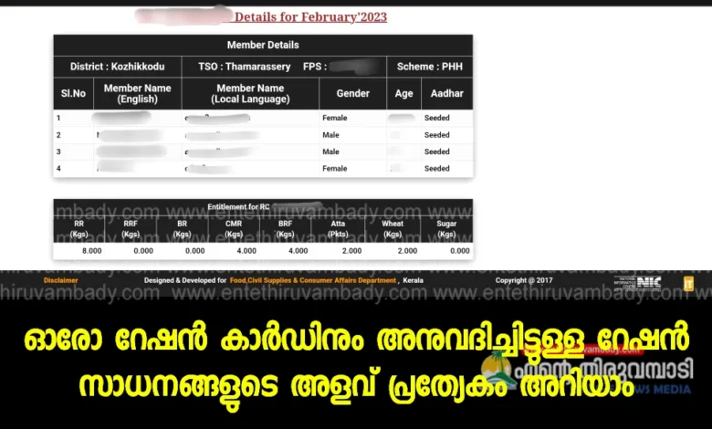 ഈ മാസം ഓരോ റേഷൻ കാർഡിനും അനുവദിച്ചിട്ടുള്ള റേഷൻ സാധനങ്ങളുടെ അളവ് പ്രത്യേകം അറിയാം