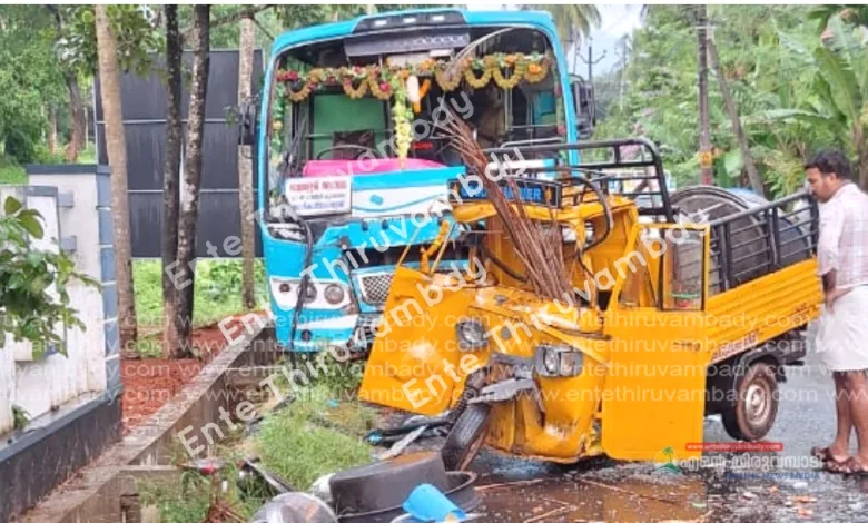 തിരുവമ്പാടി :തിരുവമ്പാടി – ഓമശ്ശേരി റോഡിൽ സർവീസ് സ്റ്റേഷൻ സമീപത്തായി കോഴിക്കോട്ടേക്ക് പോവുകയായിരുന്ന സ്വകാര്യ ബസ്സും തിരുവമ്പാടി ഭാഗത്തേക്ക് വരികയായിരുന്ന ഗുഡ്സ് ഓട്ടോയും ഇടിച്ചു രണ്ടുപേർക്ക് പരിക്ക്.ഇന്ന് വൈകിട്ട് മൂന്നുമണിയോടെ ആയിരുന്നു അപകടം സംഭവിച്ചത്.