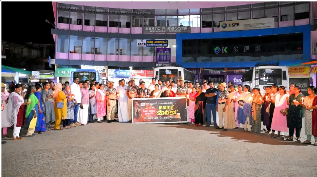 ഗ്രാമ പഞ്ചായത്ത് പ്രസിഡൻ്റ് ബിന്ദു ജോൺസൺ ഉദ്ഘാടനം ചെയ്തു.വൈസ് പ്രസിഡൻ്റ് കെ.എ അബ്ദു റഹിമാൻ അദ്ധ്യക്ഷനായി.തിരുവമ്പാടി ഗ്രാമപഞ്ചായത്ത് ഓഫീസ് പരിസരത്ത് നിന്ന് മെഴുകുതിരി തെളിയിച്ചാണ് നൈറ്റ് മാർച്ച് തുടങ്ങിയത്.തിരുവമ്പാടി ടൗൺ ചുറ്റി മാർച്ച് ബസ്സ് സ്റ്റാൻ്റിൽ സമാപിച്ചു.