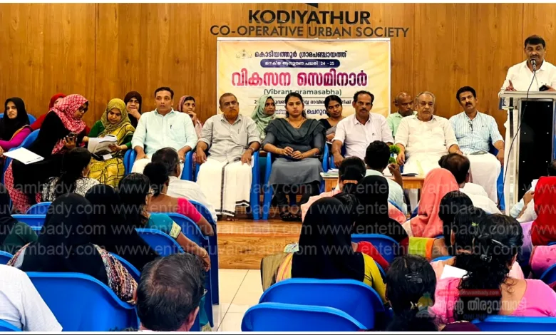 ചെറുവാടി :2024-25 സാമ്പത്തിക വർഷത്തെ പദ്ധതി രൂപീകരണത്തിന് മുന്നോടിയായി കൊടിയത്തൂരിൽ വികസന സെമിനാർ സംഘടിപ്പിച്ചു.ഇതോടെ അടുത്ത സാമ്പത്തിക വർഷത്തേക്കുള്ള പദ്ധതി തയ്യാറാക്കുന്ന പ്രവർത്തനങ്ങൾ കൊടിയത്തൂരിൽ അന്തിമ ഘട്ടത്തിലായി.ആസൂത്രണ സമിതി യോഗം,വർക്കിംഗ് ഗ്രൂപ്പ് സംഗമം,16 വാർഡുകളിലും ഗ്രാമസഭകൾ,വയോജന ഗ്രാമസഭ,ഭിന്നശേഷി ഗ്രാമസഭ,പട്ടിക വർഗ്ഗ കോളനിയിൽ ഊരു കൂട്ടം തുടങ്ങിയവ ഇതിനകം പൂർത്തീകരിച്ചു.വിവിധ തലങ്ങളിലെ പ്രവർത്തനങ്ങൾക്കൊടുവിൽ സെമിനാറിലവതരിപ്പിച്ച കരട് പദ്ധതിരേഖ വിശദമായ ചർച്ചകൾക്കൊടുവിൽ അന്തിമമാക്കും.