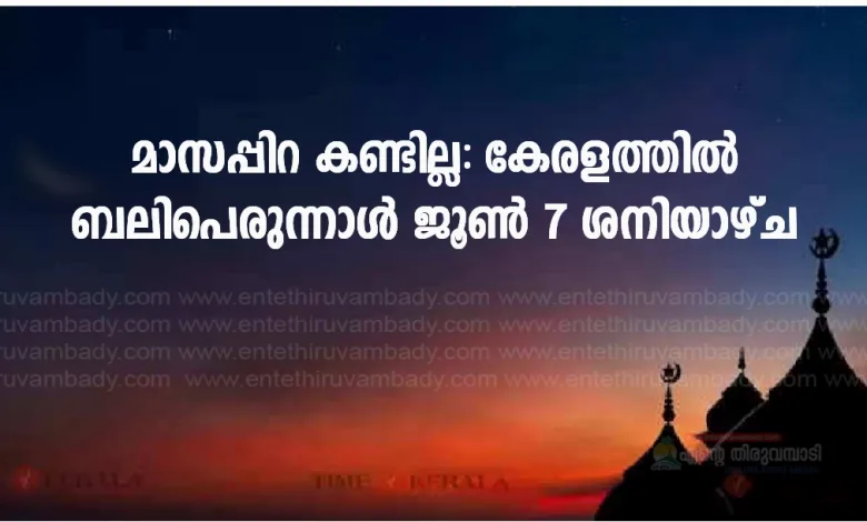 ബലിപെരുന്നാൾ ജൂൺ 7 ശനിയാഴ്ചയും ആയിരിക്കുമെന്ന് സമസ്ത പ്രസിഡണ്ട് ജിഫ്രി മുത്തുകോയ തങ്ങൾ, പാണക്കാട് സാദിഖ് അലി ശിഹാബ് തങ്ങൾ, പ്രൊഫസർ ആലിക്കുട്ടി മുസ്ലിയാർ, കാന്തപുരം എ പി അബൂബക്കർ മുസ്ലിയാർ എന്നിവർ അറിയിച്ചു.