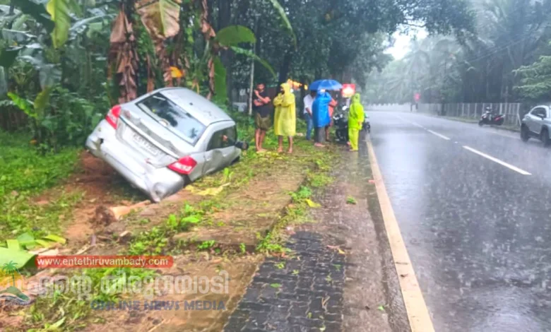 തിരുവമ്പാടി : കോടഞ്ചേരി- കക്കാടംപൊയിൽ മലയോര ഹൈവേയിൽ പൊന്നാങ്കയം തറപ്പേൽ പാലത്തിനു സമീപം കനത്ത മഴയിൽ കാർ നിയന്ത്രണം വിട്ട് പറമ്പിലേക്ക് മറിഞ്ഞു.