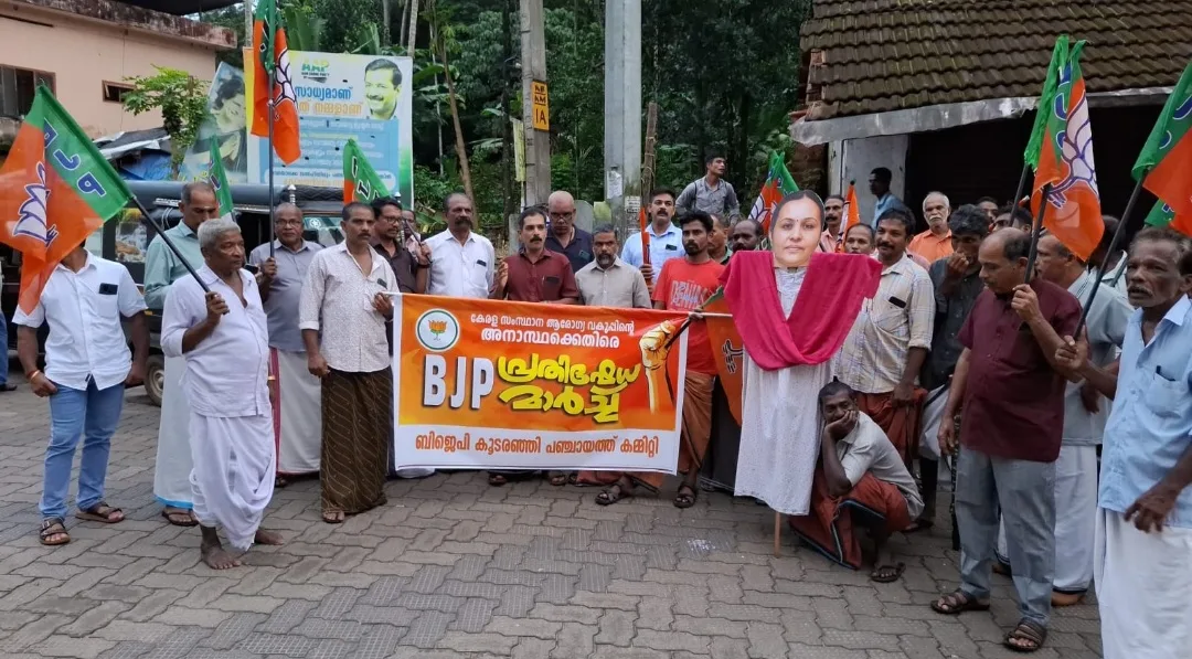 മാർച്ചിന്, ബിജെപി പഞ്ചായത്ത് പ്രസിഡണ്ട് വിൻസ് മാത്യുവിലങ്ങു പാറ, സുബ്രഹ്മണ്യൻ മമ്പാട്ട്, ജോസ് വാല് മണ്ണിൽ ശൈലേഷ് കെ സി, രവി കൂളി പാറ, എന്നിവർ നേതൃത്വം നൽകി. തുടർന്ന് നടന്ന പൊതുയോഗത്തിൽ വിൻസ് മാത്യു വിലങ്ങുപാറ,സുബ്രഹ്മണ്യൻ മമ്പാട്ട്, ജോസ് മണ്ണിൽ എന്നിവർ സംസാരിച്ചു.