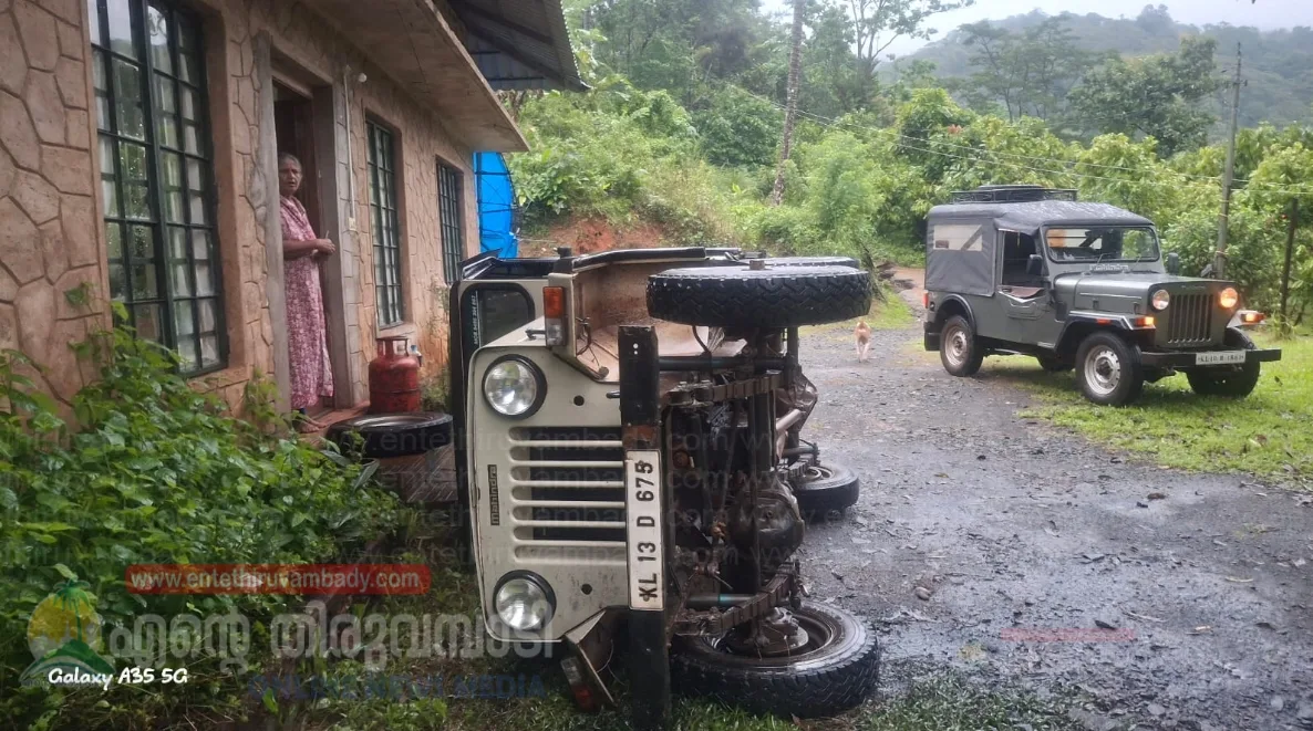 ഇന്നലെ രാത്രി തേനരുവി അബ്രാഹം ഏറ്റുമാനുക്കാരൻ്റെ വീട്ടുമുറ്റത്ത് നിർത്തിയിട്ടിരുന്ന ജീപ്പ് കാട്ടാന കുത്തി മറിച്ചിട്ടു
