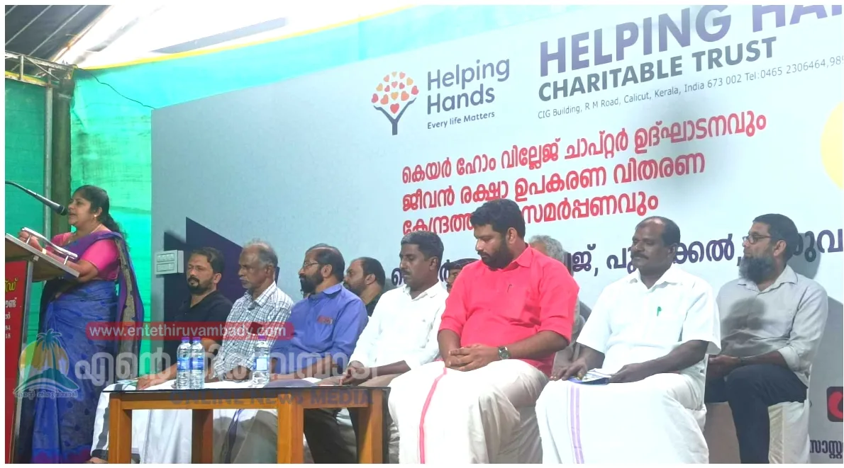 ഹെൽപ്പിംഗ് ഹാൻഡ്സ്ചാരിറ്റബിൾ ട്രസ്റ്റിന്റെ കീഴിൽപ്രവർത്തിക്കുന്ന കെയർ ഹോം വില്ലേജ് പുന്നക്കൽ ചാപ്റ്ററിന്റെ ഉദ്ഘാടനം തിരുവമ്പാടി ഗ്രാമപഞ്ചായത്ത് പ്രസിഡണ്ട് ബിന്ദു ജോൺസൺ നിർവഹിച്ചു. ഇതോടനുബന്ധിച്ച്ആരംഭിച്ച സൗജന്യ ജീവൻ രക്ഷ ഉപകരണ വിതരണ കേന്ദ്രം കൂടരഞ്ഞി ഗ്രാമപഞ്ചായത്ത് പ്രസിഡണ്ട് ആദർശ് ജോസഫ് ഉദ്ഘാടനം ചെയ്തു. ഹെൽപ്പിംഗ് ഹാൻഡ്സ് പ്രസിഡണ്ട് കെ.വി.നിയാസ് അധ്യക്ഷത വഹിച്ചു. ഗ്രാമപഞ്ചായത്ത് അംഗങ്ങളായ രവീന്ദ്രൻ,അപ്പു കോട്ടയിൽ, കൺവീനർ ഷൗക്കത്ത് തിരുവമ്പാടി, ഹെൽപ്പിംഗ് ഹാൻഡ്സ് സെക്രട്ടറി,എം.കെ. നൗഫൽ, ജാബിർ വാഴക്കാട്, ചാപ്റ്റർ ട്രഷറർ യൂസഫ് പുന്നക്കൽ പ്രസംഗിച്ചു.