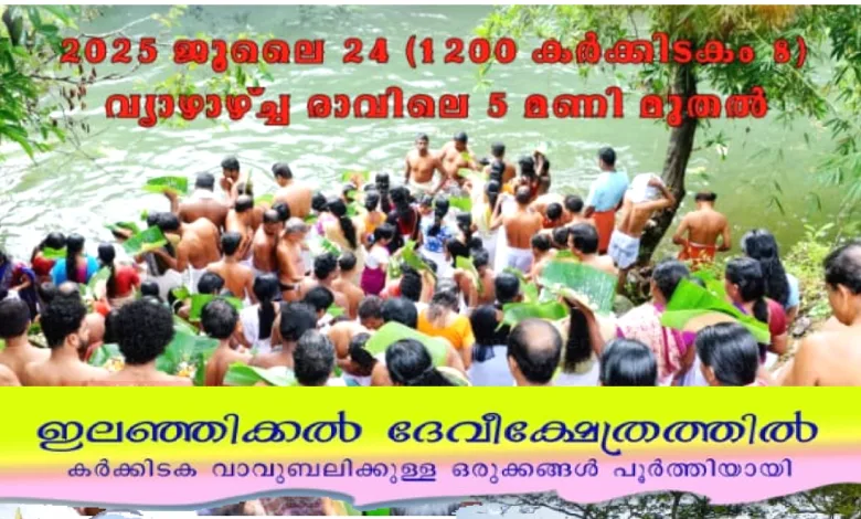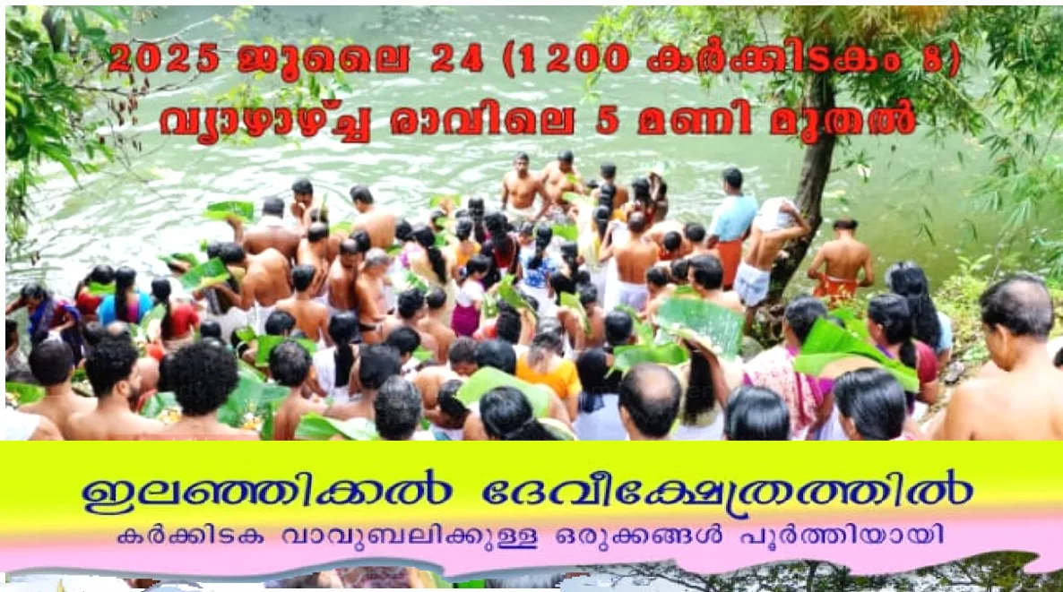 നാളെ (24/7/25) പുലർച്ചെ അഞ്ചുമണിക്ക് ക്ഷേത്രം മേൽശാന്തി എൻ എസ് രജീഷ് ശാന്തിയുടെ മുഖ്യകാർമികത്വത്തിൽ ബലിതർപ്പണ ചടങ്ങുകൾ ആരംഭിക്കും. കർക്കിടക വാവിനോട് അനുബന്ധിച്ച് പിതൃപൂജ നമസ്കാരഊട്ട് തിലഹോമം പിതൃനമസ്കാരം കൂട്ടനമസ്കാരം എന്നീ വഴിപാടുകളും ഉണ്ടാകുന്നതാണ്.