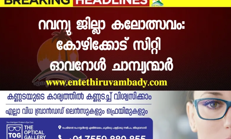 അഞ്ച് ദിനരാത്രങ്ങളിൽ പേരാമ്പ്രയിൽ കൗമാര കലയുടെ മാമാങ്കം തീർത്ത കോഴിക്കോട് റവന്യൂ ജില്ലാ സ്കൂൾ കലോത്സവത്തിൽ ഓവറോൾ ചാമ്പ്യന്മാരായി കോഴിക്കോട് സിറ്റി. കലോത്സത്തിന്റെ തുടക്കം മുതൽ വ്യക്തമായ ലീഡ് നിലനിർത്തി 914 പോയിന്റുമായാണ് കോഴിക്കോട് സിറ്റി ഉപജില്ലയുടെ കിരീടനേട്ടം. 848 പോയിന്റുമായി ചേവായൂർ ഉപജില്ല രണ്ടും 819 പോയിന്റ് നേടി കൊയിലാണ്ടി മൂന്നാം സ്ഥാനവും കരസ്ഥമാക്കി. സ്കൂളുകളിൽ സിൽവർ ഹിൽസ് ഹയർ സെക്കൻഡറി സ്കൂൾ ഒന്നാം സ്ഥാനം കരസ്ഥമാക്കിയപ്പോൾ, മേമുണ്ട ഹയർ സെക്കൻഡറി സ്കൂൾ, പേരാമ്പ്ര ഹയർ സെക്കൻഡറി സ്കൂൾ എന്നിവ യഥാക്രമം രണ്ട്, മൂന്ന് സ്ഥാനങ്ങൾ നേടി. 332, 297, 236 എന്നിങ്ങനെയാണ് സ്കൂളുകളുടെ പോയിന്റ് നില.ഹൈസ്കൂൾ, ഹയർസെക്കൻഡറി വിഭാഗങ്ങളിൽ കോഴിക്കോട് സിറ്റിയാണ് ഒന്നാമത്. ഹെെസ്കൂൾ വിഭാഗത്തിൽ കൊയിലാണ്ടിയും ഹയർസെക്കൻഡറി വിഭാഗത്തിൽ ചേവായൂരുമാണ് രണ്ടാമത്. യു.പി വിഭാഗത്തിൽ ഫറോക്ക് വിജയിച്ചപ്പോൾ കുന്നുമ്മൽ രണ്ടാമതെത്തി. സംസ്കൃതോത്സവം യു.പി വിഭാഗത്തിൽ മേലടിയും ഹെെ സ്കൂൾ വിഭാഗത്തിൽ ബാലുശ്ശേരിയും ചാമ്പ്യന്മാരായി. അതേസമയം യു.പി വിഭാഗം അറബിക് സാഹിത്യോത്സവത്തിൽ കൊയിലാണ്ടി, നാദാപുരം, താമരശ്ശേരി ഉപജില്ലകൾ ഒന്നാംസ്ഥാനം പങ്കിട്ടു. ഹെെസ്കൂൾ വിഭാഗത്തിൽ നാദാപുരം ഒന്നാമതെത്തി. ഡിസംബർ മൂന്ന് മുതൽ എട്ട് വരെ പേരാമ്പ്രയിലെ വിവിധ സ്ഥലങ്ങളിൽ ഒരുക്കിയ 19 വേദികളിലാണ് കലോത്സവം അരങ്ങേറിയത്. 17 സബ് ജില്ലകളിൽ നിന്നായി 10,000 ഓളം കലാ പ്രതിഭകളാണ് കലോത്സവത്തിൽ മാറ്റുരച്ചത്