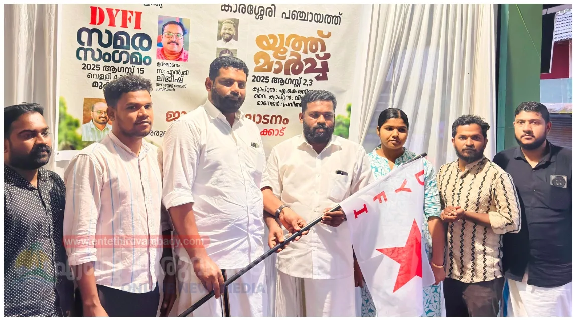 മുക്കം:ഈ വരുന്ന ആഗസ്റ്റ് 15 സമര സംഗമത്തിന്റെ പ്രചരണാർത്ഥം ഡി വൈ എഫ് ഐ കാരശ്ശേരി പഞ്ചായത്ത് കമ്മിറ്റി സംഘടിപ്പിക്കുന്ന യൂത്ത് മാർച്ച് ആരംഭിച്ചു.