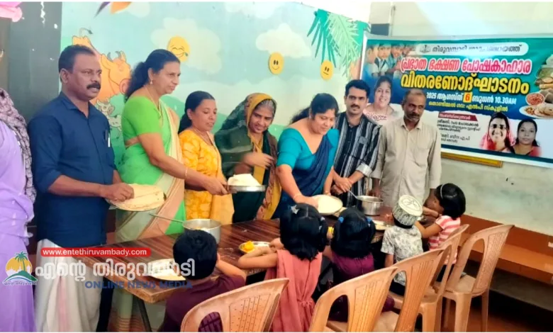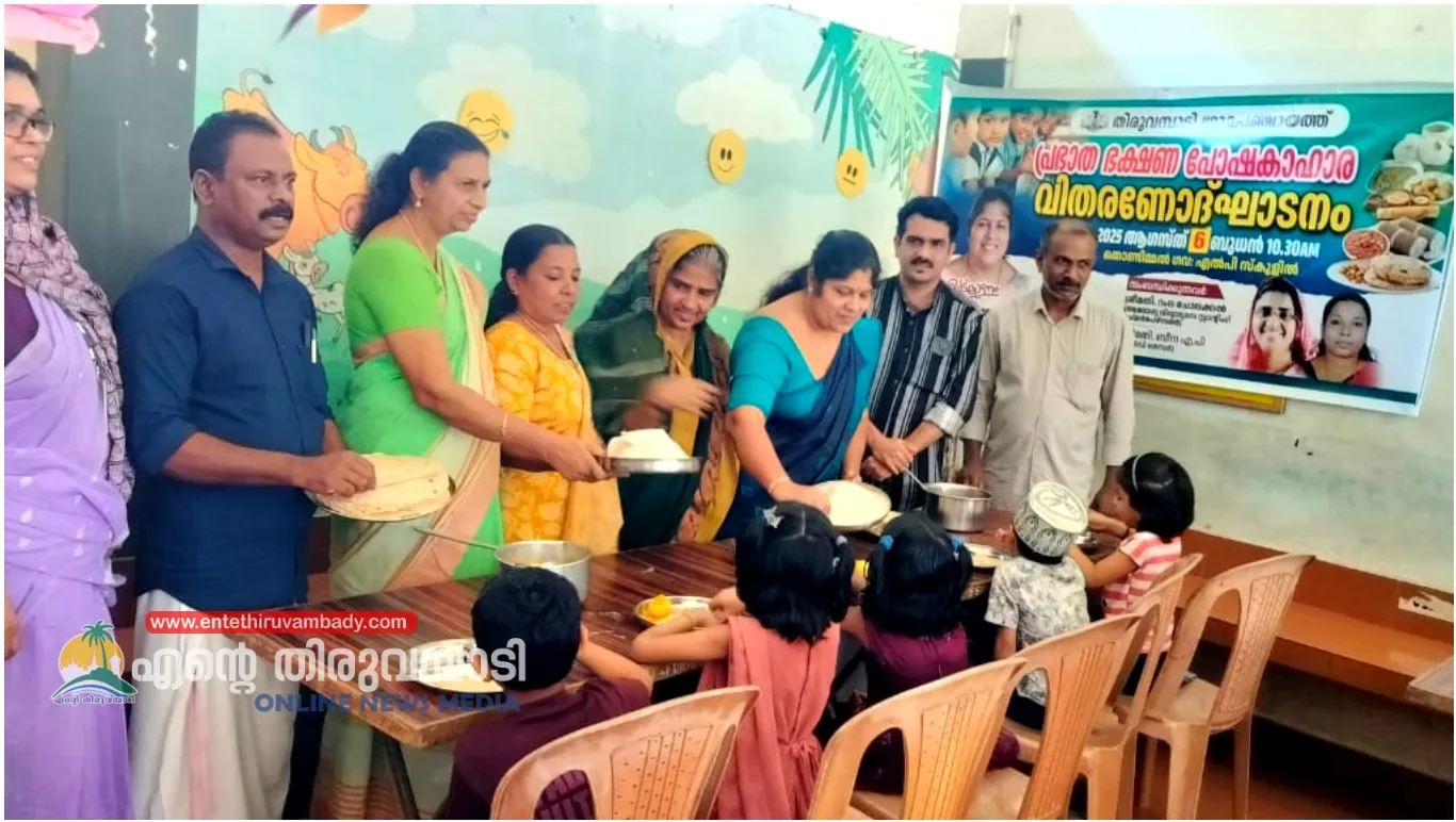 തിരുവമ്പാടി : തിരുവമ്പാടി ഗ്രാമപഞ്ചായത്തിലെ സർക്കാർ വിദ്യാലയങ്ങളായ ആനക്കാംപൊയിൽ ഗവ: എൽപി സ്കൂളിലും തൊണ്ടിമ്മൽ ഗവ: എൽപി സ്കൂളിലും പ്രഭാത ഭക്ഷണ പോഷകാഹാര വിതരണം തുടങ്ങി.ഗ്രാമ പഞ്ചായത്തിൻ്റെ വാർഷിക പദ്ധതിയുടെ ഭാഗമായാണ് പ്രഭാത ഭക്ഷണ വിതരണം ആരംഭിച്ചത്. ചപ്പാത്തി, വെള്ളപ്പം, നൂൽപുട്ട്, ഉപ്പുമാവ്, ഇഡലി എന്നിവയാണ് വിഭവങ്ങൾ.തൊണ്ടിമ്മൽ ഗവ: എൽപി സ്കൂളിൽ നടന്ന ചടങ്ങിൽ ഗ്രാമപഞ്ചായത്ത് പ്രസിഡണ്ട് ബിന്ദു ജോൺസൺ പ്രഭാത ഭക്ഷണ വിതരണോദ്ഘാടനം ‘ നിർവ്വഹിച്ചു. ഗ്രാമ പഞ്ചായത്ത് വൈസ് പ്രസിഡണ്ട് കെ. എ. അബ്ദുറഹിമാൻ അധ്യക്ഷത വഹിച്ചു. ആരോഗ്യ വിദ്യാഭ്യാസ സ്റ്റാൻഡിങ് കമ്മിറ്റി ചെയർപേഴ്സൺ റംല ചോലക്കൽ, വാർഡ് മെമ്പർമാരായ ലിസി സണ്ണി, എ പി ബീന,എസ് എം സി ചെയർമാൻ പി ജിഷി, എന്നിവർ സംസാരിച്ചു.പ്രധാനാധ്യാപിക കെ എസ് രഹന മോൾ സ്വാഗതവും, പിടിഎ പ്രസിഡണ്ട് സുരേഷ് തൂലിക നന്ദിയും പറഞ്ഞു.