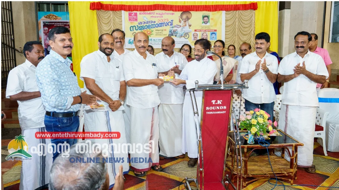 തിരുവമ്പാടി:കേരള മലനാട് മാർക്കറ്റിംഗ് സൊസൈറ്റിയുടെ സംരംഭമായ മാർടെക്സ് വെഡ്ഡിംഗ് സെന്ററിൽ ഓണം സമ്മാനോത്സവ് 2025 തിരുവമ്പാടി സേക്രട്ട് ഹാർട്ട് ഫൊറോന ചർച്ച് വികാരി റവ: ഫാദർ തോമസ് നാഗപറമ്പിൽ ഉദ്ഘാടനം ചെയ്തു. തിരുവമ്പാടി മാർക്കറ്റിംഗ് സൊസൈറ്റി പ്രസിഡന്റ് ബാബു പൈക്കാട്ടിൽ അധ്യക്ഷത വഹിച്ച ഉദ്ഘാടന ചടങ്ങിൽ മുൻ ജില്ലാ പഞ്ചായത്ത് മെമ്പർ സി. കെ കാസിം, താമരശ്ശേരി കോ-ഓപ്പറേറ്റീവ് അർബൻ സൊസൈറ്റി പ്രസിഡന്റ് പി. ഗിരീഷ് കുമാർ, തിരുവമ്പാടി സേക്രട്ട് ഹാർട്ട് യു. പി. സ്കൂൾ ഹെഡ്മാസ്റ്റർ സുനിൽ പോൾ എന്നിവർ കൂപ്പണുകൾ ഏറ്റു വാങ്ങി. ഓരോ 1500 രൂപയുടെ പർച്ചേസിനും സമ്മാന കൂപ്പൺ ഏർപ്പാടാക്കിയിട്ടുണ്ട്. ഓഗസ്റ്റ് 14 മുതൽ സെപ്റ്റംബർ 30 വരെയാണ് സമ്മാനോത്സവ് കാലാവധി. നറുക്കെടുപ്പ് വിജയികൾക്ക് സ്കൂട്ടർ, എയർ കണ്ടീഷണർ, വാഷിംഗ് മെഷീൻ, സൈക്കിൾ 10 പേർക്ക്, ബെഡ്ഷീറ്റ് 50 പേർക്ക് ലഭിക്കും. ഉദ്ഘാടന ചടങ്ങിൽ ജില്ലാ പഞ്ചായത്ത് മെമ്പർ ബോസ് ജേക്കബ്, മുൻ ജില്ലാ പഞ്ചായത്ത് മെമ്പർ സി. കെ. കാസിം, താമരശ്ശേരി കോ-ഓപ്പറേറ്റീവ് അർബൻ സൊസൈറ്റി പ്രസിഡന്റ് പി. ഗിരീഷ് കുമാർ, സേക്രട്ട് ഹാർട്ട് യു. പി. സ്കൂൾ ഹെഡ്മാസ്റ്റർ സുനിൽ പോൾ, ടി. ജെ കുര്യാച്ചൻ, മനോജ് സെബാസ്റ്റ്യൻ വാഴേപറമ്പിൽ, ലിസി മാളിയേക്കൽ, മേഴ്സി പുളിക്കാട്ട്, രാമചന്ദ്രൻ കരിമ്പിൽ, ലിസി സണ്ണി, മുഹമ്മദ് വട്ടപ്പറമ്പിൽ, ഷിജു ചെമ്പനാനി, സുലൈഖ അടുക്കത്ത്, ബഷീർ ചൂരക്കാട്ട്, ഗോപിനാഥൻ മൂത്തേടത്ത്, റോയ് മനയാനി, പുരുഷൻ നെല്ലിമൂട്ടിൽ, മറിയം യു. സി, എ. കെ. മുഹമ്മദ്, മൊയ്ദീൻ കാട്ടിപ്പരുത്തി, ജോജോ നെല്ലരിയിൽ, വേലായുധൻ തുമ്പക്കോട്ട്, സംഘം വൈസ് പ്രസിഡന്റ് റോബർട്ട് നെല്ലിക്കതെരുവിൽ, ഡയറക്ടർമാരായ ഹനീഫ ആച്ചപ്പറമ്പിൽ, ഷെറീന കിളിയണ്ണി, മില്ലി മോഹൻ, ജോർജ് പാറെക്കുന്നത്ത്, ഫ്രാൻസിസ് സാലസ്, നീന ജോഫി, സംഘം സെക്രട്ടറി പ്രശാന്ത് കുമാർ പി. എൻ. പ്രസംഗിച്ചു.