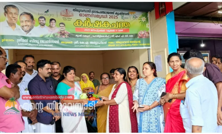 തിരുവമ്പാടി ഗ്രാമപഞ്ചായത്തും കൃഷി ഭവനും സംയുക്തമായി സംഘടിപ്പിച്ച കർഷക ചന്ത തിരുവമ്പാടി ഗ്രാമ പഞ്ചായത് ബസ് സ്റ്റാൻഡിൽ ഗ്രാമ പഞ്ചായത്ത് വൈസ് പ്രസിഡന്റ് കെ ഏ അബ്ദുറഹിമന്റെ അധ്യക്ഷതയിൽ പഞ്ചായത്ത് പ്രസിഡന്റ് ബിന്ദു ജോൺസൻ ഉദ്ഘാടനം ചെയ്തു. ആദ്യ വില്പന ഷൈനി ബെന്നി ഏറ്റു വാങ്ങി. നാടൻ ഉൽപ്പന്നങ്ങളുടെ വില്പന ജോസ് കരോട്ടുമല ഏറ്റു വാങ്ങി. ചടങ്ങിൽ സ്റ്റാൻഡിങ് കമ്മിറ്റി ചെയർമാൻ മാരായ ലിസ്സി എബ്രഹാം, രാജു അമ്പലത്തിങ്കൽ, റംല ചോലക്കൽ, വാർഡ് അംഗങ്ങളായ ഷൈനി ബെന്നി, രാമചന്ദ്രൻ കരിമ്പിൽ, ഷൌക്കത്തലി, മുഹമ്മദ്, മേഴ്സി പുളിക്കാട്ടു, ലിസ്സി സണ്ണി, കാർഷിക വികസന സമിതി അംഗങ്ങൾ ആയ ഗോപിലാൽ, ഷിബു ചെമ്പനാനി, മോഹനൻ മണിയങ്ങാട്, ജോർജ്, എന്നിവർ ആശംസ അർപ്പിച്ചു. കൃഷി ഓഫീസർ മുഹമ്മദ് ഫാസിൽ സ്വാഗതവും കൃഷി അസിസ്റ്റന്റ് രജീഷ് കെ കെ നന്ദിയും പ്രകടിപ്പിച്ചു.
