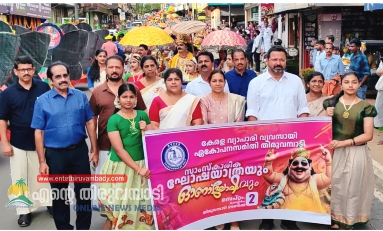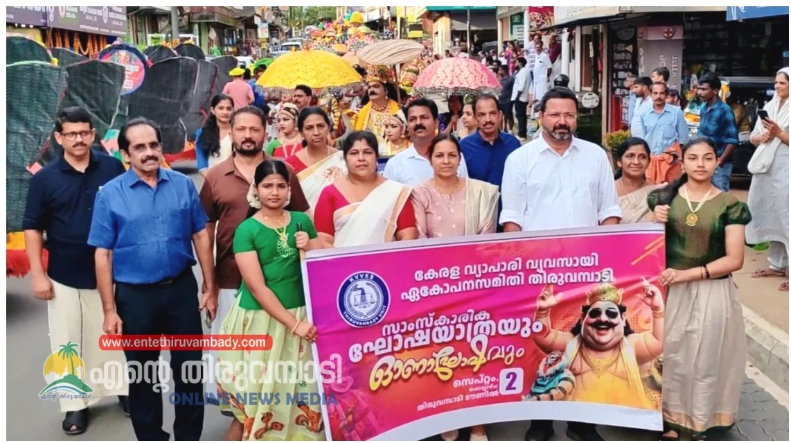 തിരുവമ്പാടി: കേരള വ്യാപാരി വ്യവസായി ഏകോപനസമിതി – തിരുവമ്പാടി യൂണിറ്റിന്റെ ആഭിമുഖ്യത്തിൽ തിരുവോണം ഫെസ്റ്റ് 2025 എന്ന പേരിൽ  സാംസ്‌കാരിക ഘോഷയാത്രയും ഓണാഘോഷവും സംഘടിപ്പിച്ചു.