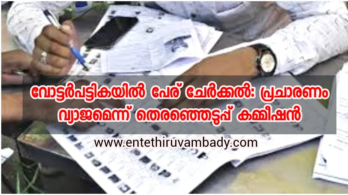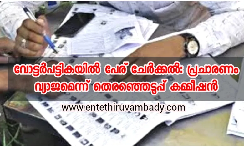 തദ്ദേശ സ്വയംഭരണ തെരഞ്ഞെടുപ്പിനുള്ള വോട്ടര്പട്ടികയില് പേര് ചേര്ക്കാന് ഒക്ടോബര് വരെ അവസരമെന്ന സമൂഹ മാധ്യമങ്ങളിലെ പ്രചാരണം വ്യാജമാണെന്ന് സംസ്ഥാന തെരഞ്ഞെടുപ്പ് കമീഷന് അറിയിച്ചു.