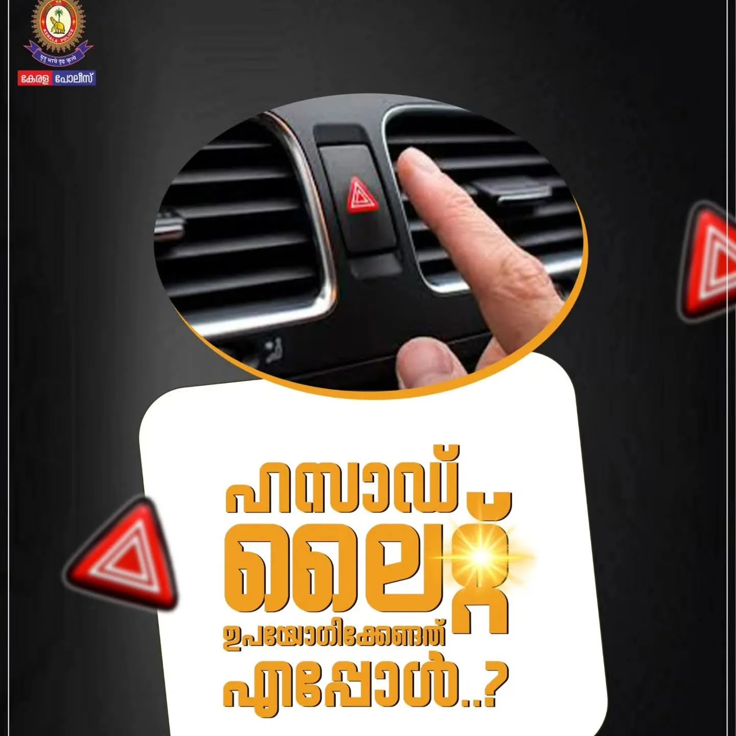 യാത്രയ്ക്കിടെ റോഡിൽ വാഹനം നിര്ത്തേണ്ട അടിയന്തര സാഹചര്യമുണ്ടായാൽ മാത്രം പുറകെ വരുന്ന വാഹനങ്ങൾക്ക് സൂചന നല്കുന്നതിനാണ് ഹസാര്ഡ് വാർണിംഗ് ലൈറ്റ് ഉപയോഗിക്കേണ്ടത്. ലൈൻ മാറ്റം, തിരിവുകൾ തുടങ്ങിയ മറ്റ് അവസരങ്ങളിൽ ഈ സിഗ്നൽ ഉപയോഗിക്കുന്നത് പുറകെ വരുന്ന വാഹനങ്ങളിലെ ഡ്രൈവർമാർക്ക് ആശയക്കുഴപ്പമുണ്ടാക്കും. റോഡുകൾ ചേരുന്ന ജംഗ്ഷനുകളിൽ നേരെ പോകുന്നതിലേക്കായി ചിലർ ഹസാർഡ് വാർണിംഗ് ലൈറ്റ് ഉപയോഗിക്കാറുണ്ട്. അത് തെറ്റായ പ്രവണതയാണ്. അതുപോലെ നിരത്തുകളിൽ ഹസാർഡ് വാർണിംഗ് ലൈറ്റ് പ്രവർത്തിപ്പിച്ച വാഹനത്തെ കണ്ടാൽ അത് നിർത്തിയിട്ടിരിക്കുകയാണെന്ന് മനസിലാക്കി വേണ്ട മുൻകരുതലുകൾ സ്വീകരിക്കുക.