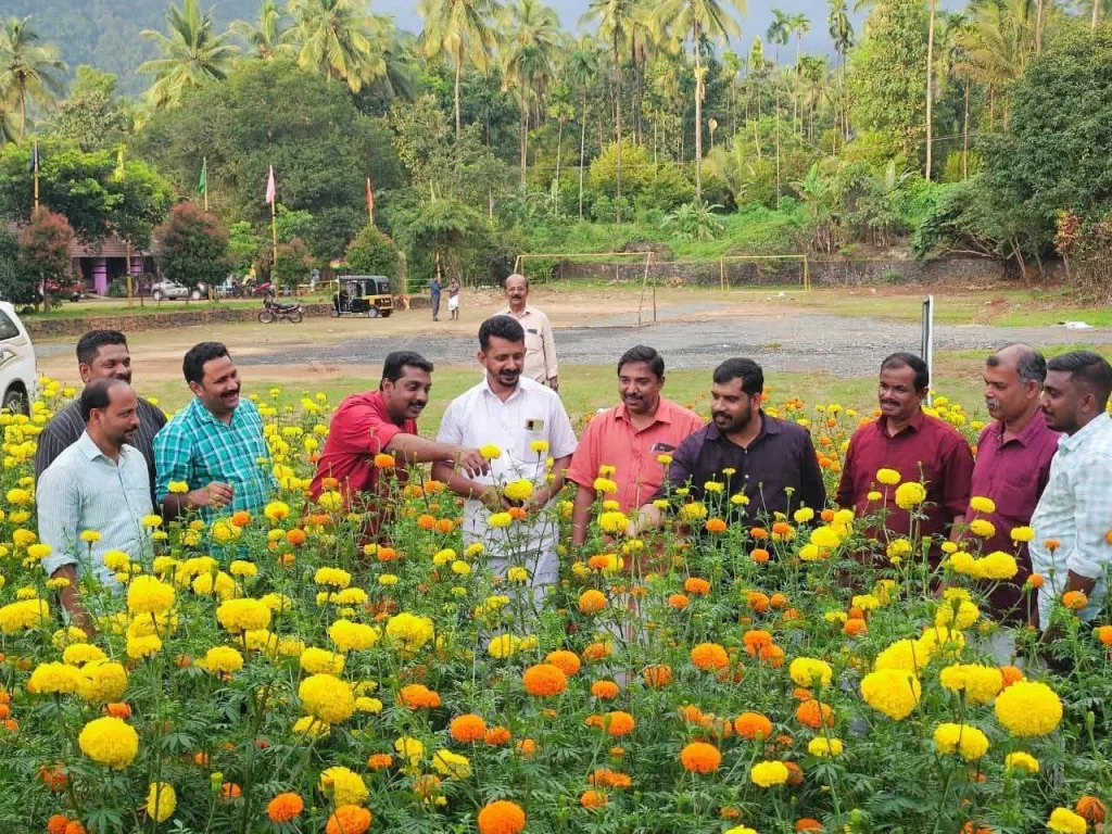മൂന്നുമാസം മുമ്പാണ് തിരുവമ്പാടി കൃഷിഭവനിൽ നിന്ന് വാങ്ങിയ 1000 ചെണ്ടുമല്ലി തൈകൾ നട്ടത്. വിദ്യാർഥികൾക്കും അധ്യാപകർക്കും ചെണ്ടുമല്ലി കൃഷിയിൽ മാർഗനിർദേശം നൽകിയത് പ്രദേശത്തെ കർഷകനായ ചേന്ദംപ്പള്ളി തങ്കപ്പനാണ്. തിരുവമ്പാടി റോട്ടറി ക്ലബാണ് കൃഷിക്ക് ധനസഹായം നൽകിയത്. സ്കൂൾ പ്രധാനാധ്യാപകൻ റോയി മുരിക്കോലിന്റെ പ്രചോദനത്തിലാണ് വിദ്യാർഥികളും അധ്യാപകരും ചെണ്ടുമല്ലി തോട്ടമൊരുക്കിയത്. ദിവസവും നിരവധി പേരാണ് പ്രദേശത്ത് സന്ദർശനം നടത്തുന്നത്.