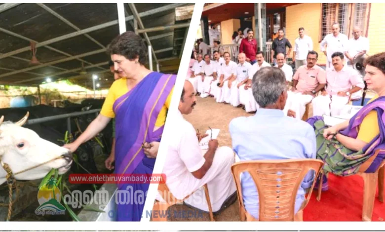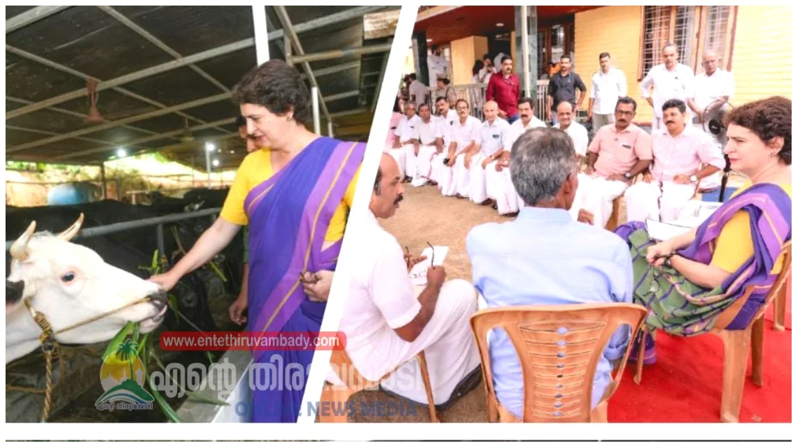 കോടഞ്ചേരി: കോടഞ്ചേരി പഞ്ചായത്തിലെ ചെമ്പുകടവ് മേരി മാതാ ഡയറി ഫാർമിൽ ക്ഷീര കർഷകരുടെ പ്രതിനിധികളുമായി പ്രിയങ്ക ഗാന്ധി എം.പി കൂടിക്കാഴ്ച നടത്തി. ക്ഷീരകർഷകർ നേരിടുന്ന വിവിധ പ്രശ്നങ്ങൾ പ്രിയങ്ക ഗാന്ധി എം.പി.യുടെ ശ്രദ്ധയിൽ പെടുത്തി.
