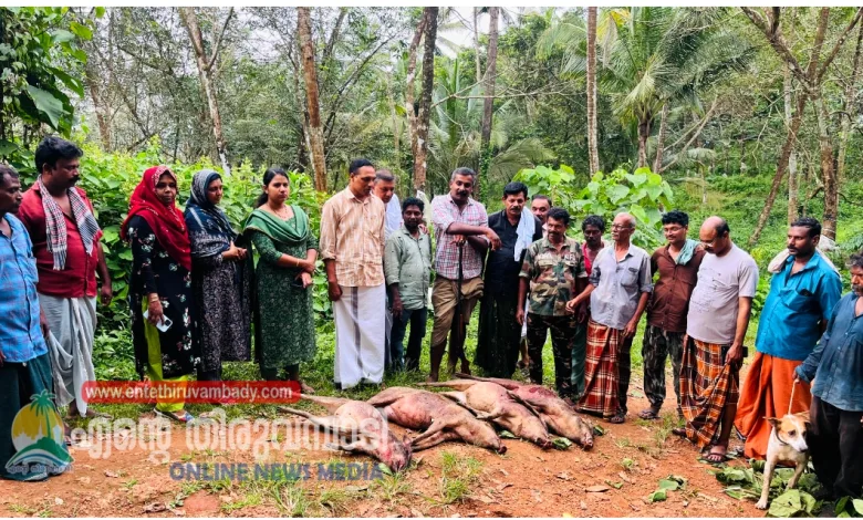 കാട്ടുപന്നി ശല്യം രൂക്ഷമായ കൊടിയത്തൂരിൽ കാടിളക്കി നായാട്ട്; 9 പന്നികളെ വെടിവെച്ചുകൊന്നു